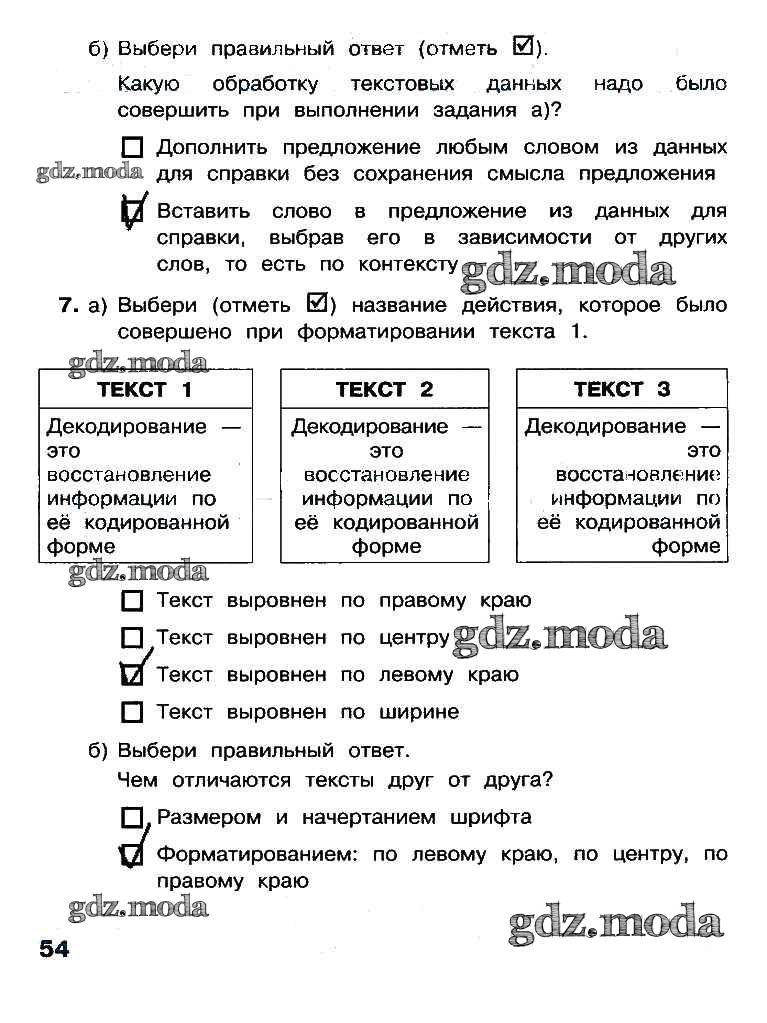 ГДЗ решение к заданию № 54 Информатика 3 класс рабочая тетрадь Матвеева Н.В. Бином 2017 Часть 1, Часть 2 ФГОС бесплатно на гдз.мода!