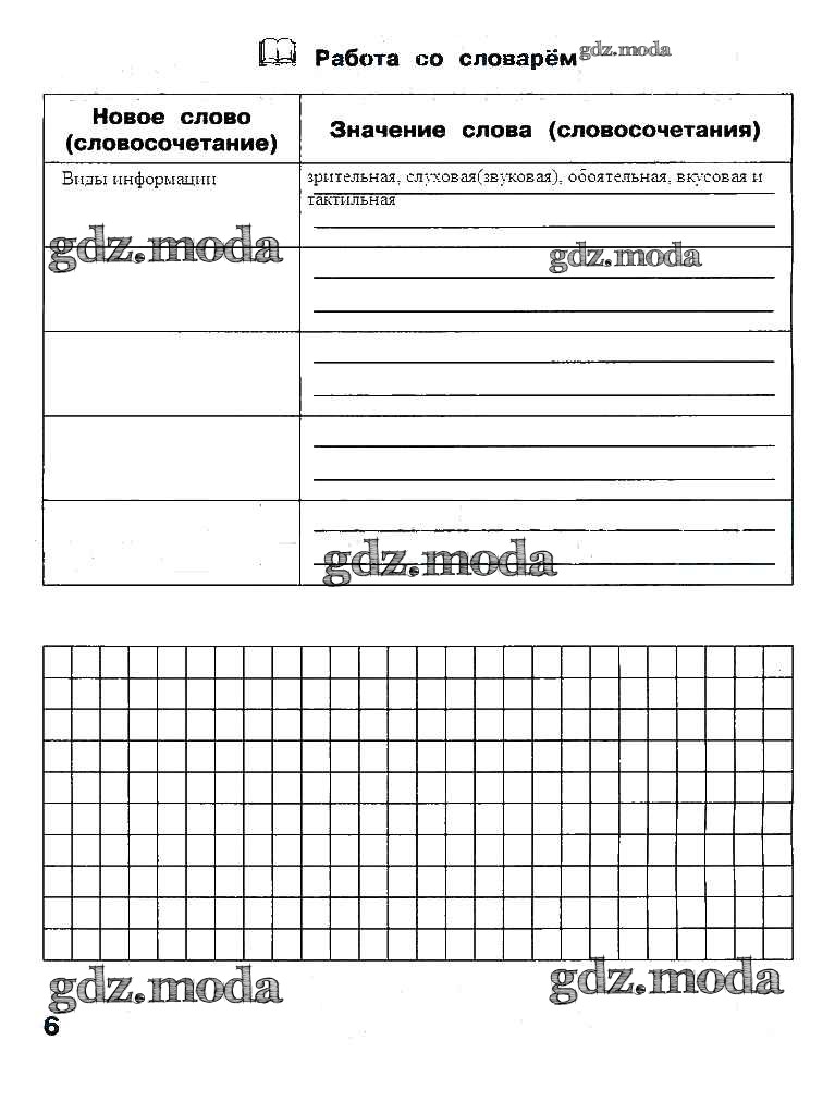 ГДЗ решение к заданию № 6 Информатика 3 класс рабочая тетрадь Матвеева Н.В. Бином 2017 Часть 1, Часть 2 ФГОС бесплатно на гдз.мода!
