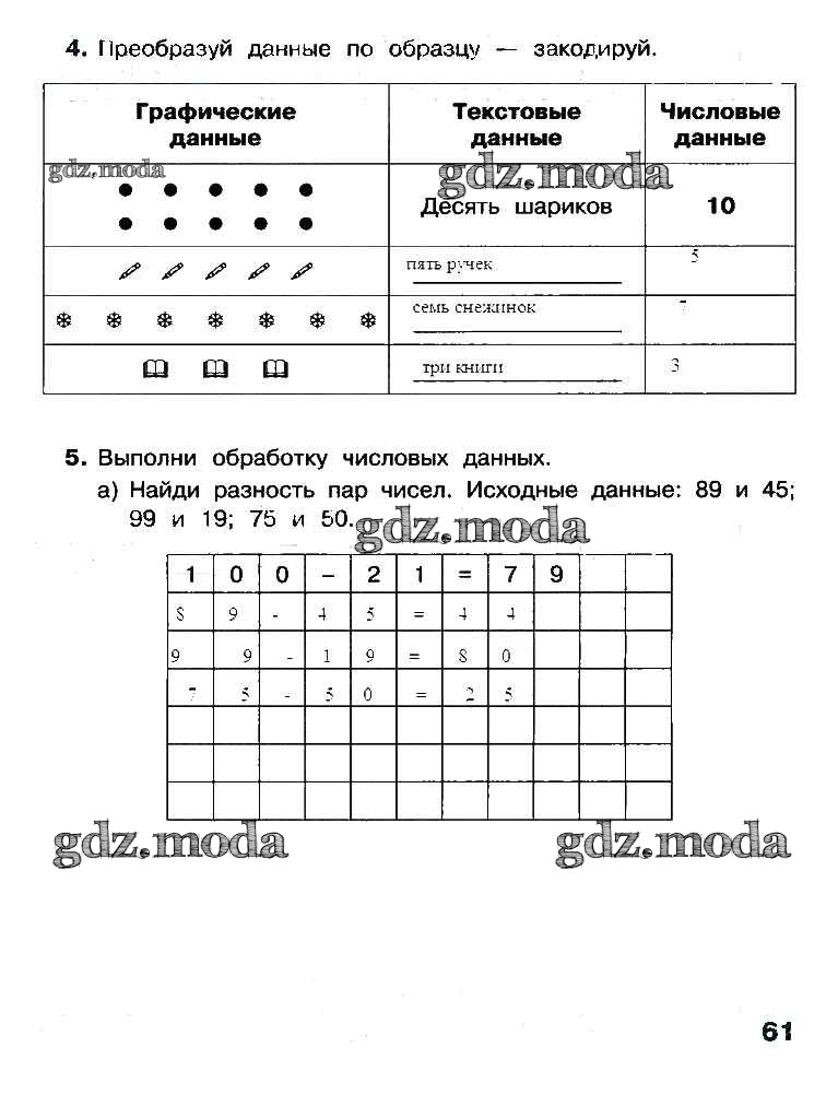 ГДЗ решение к заданию № 61 Информатика 3 класс рабочая тетрадь Матвеева Н.В. Бином 2017 Часть 1, Часть 2 ФГОС бесплатно на гдз.мода!