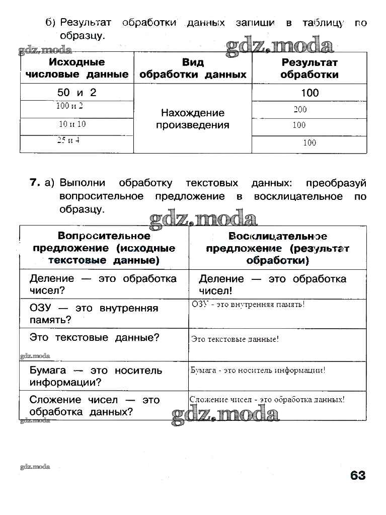ГДЗ решение к заданию № 63 Информатика 3 класс рабочая тетрадь Матвеева Н.В. Бином 2017 Часть 1, Часть 2 ФГОС бесплатно на гдз.мода!