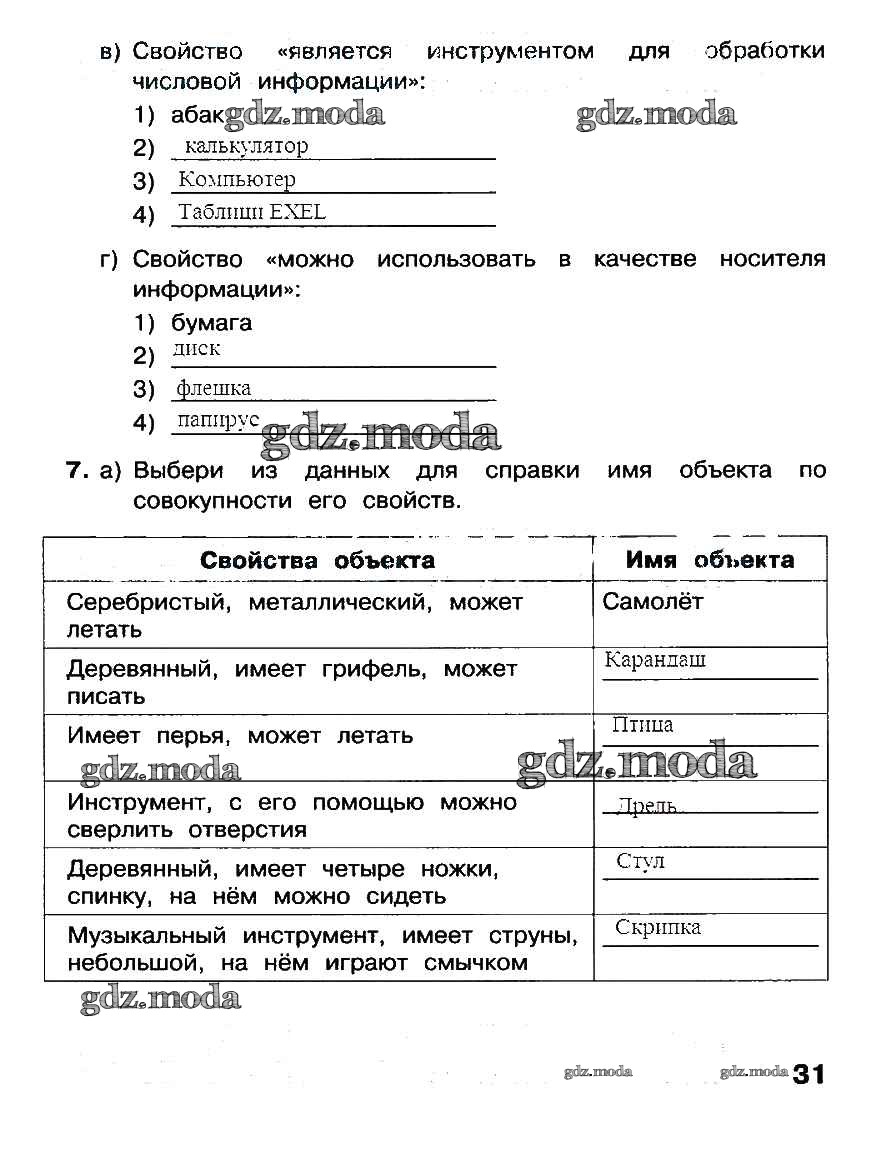 ГДЗ решение к заданию № 31 Информатика 3 класс рабочая тетрадь Матвеева Н.В. Бином 2017 Часть 1, Часть 2 ФГОС бесплатно на гдз.мода!