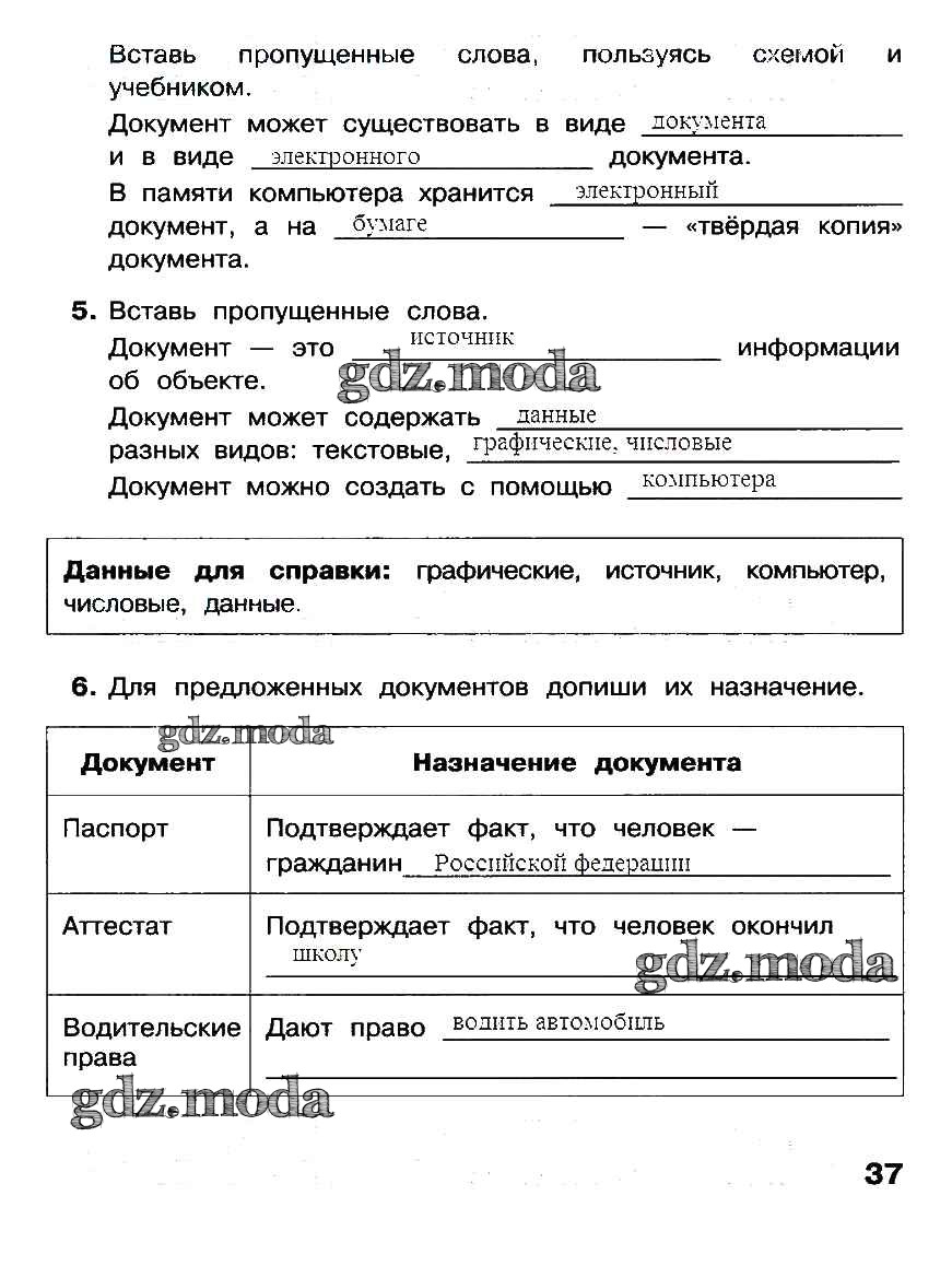 ОТВЕТ на задание № 37 Рабочая тетрадь по Информатике 3 класс Матвеева