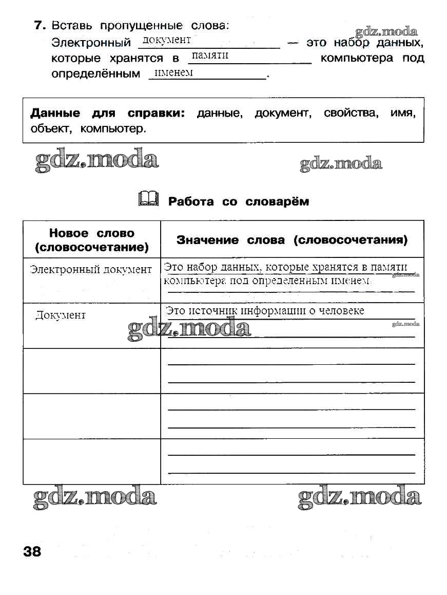 ГДЗ решение к заданию № 38 Информатика 3 класс рабочая тетрадь Матвеева Н.В. Бином 2017 Часть 1, Часть 2 ФГОС бесплатно на гдз.мода!