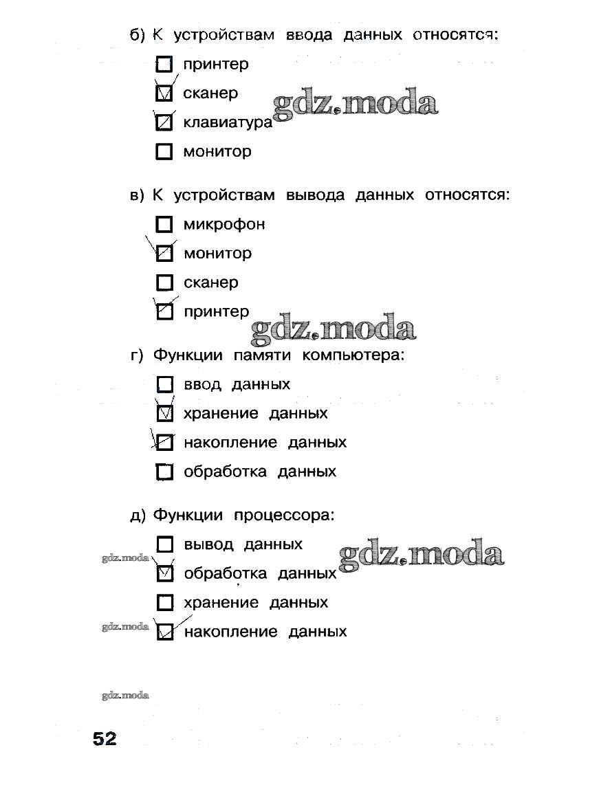 ГДЗ решение к заданию № 52 Информатика 3 класс рабочая тетрадь Матвеева Н.В. Бином 2017 Часть 1, Часть 2 ФГОС бесплатно на гдз.мода!