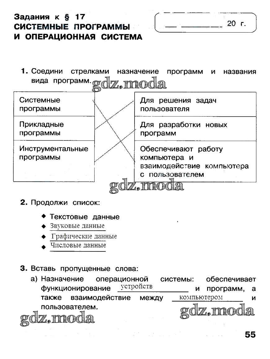 ГДЗ решение к заданию № 55 Информатика 3 класс рабочая тетрадь Матвеева Н.В. Бином 2017 Часть 1, Часть 2 ФГОС бесплатно на гдз.мода!