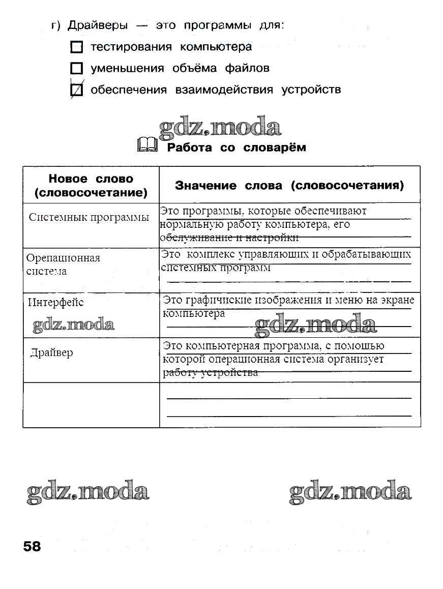ГДЗ решение к заданию № 58 Информатика 3 класс рабочая тетрадь Матвеева Н.В. Бином 2017 Часть 1, Часть 2 ФГОС бесплатно на гдз.мода!