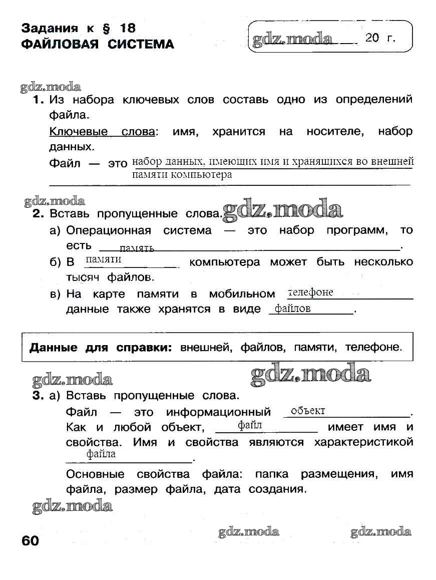 ГДЗ решение к заданию № 60 Информатика 3 класс рабочая тетрадь Матвеева Н.В. Бином 2017 Часть 1, Часть 2 ФГОС бесплатно на гдз.мода!