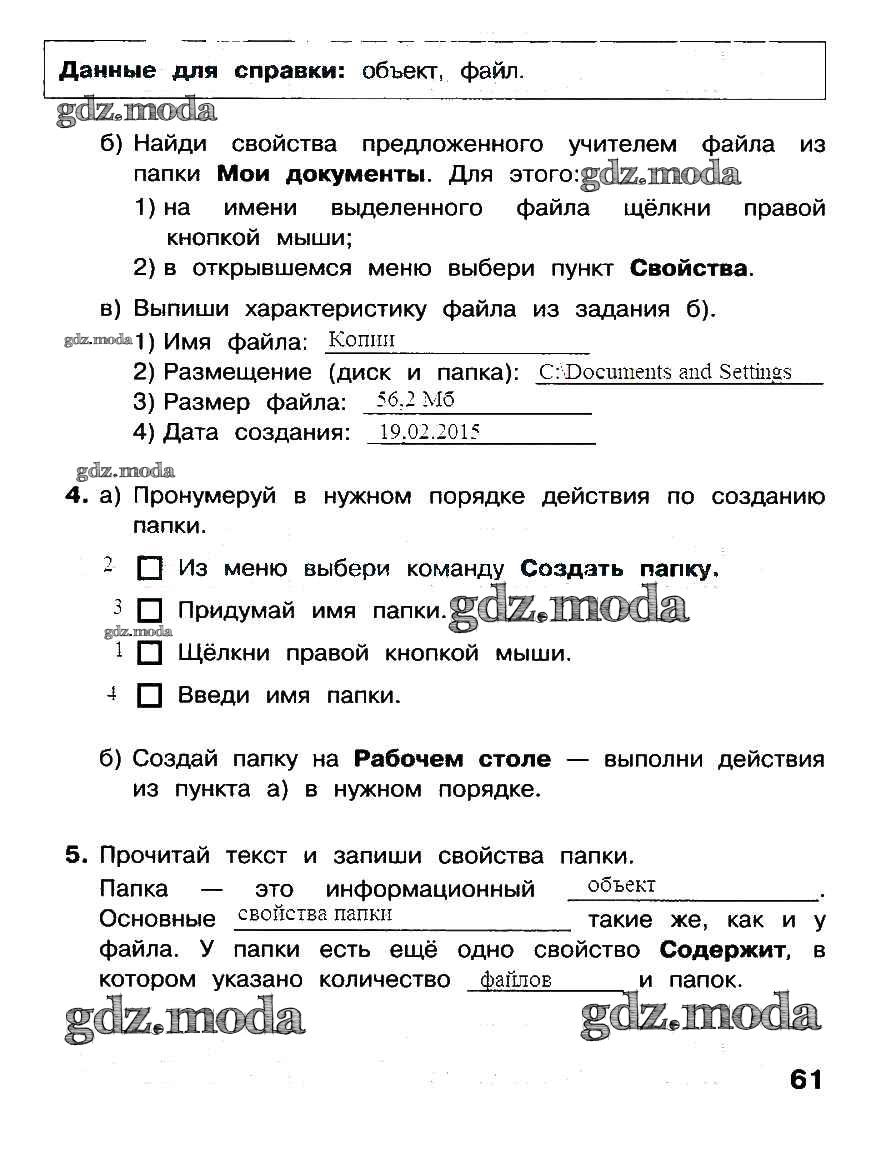 ГДЗ решение к заданию № 61 Информатика 3 класс рабочая тетрадь Матвеева Н.В. Бином 2017 Часть 1, Часть 2 ФГОС бесплатно на гдз.мода!