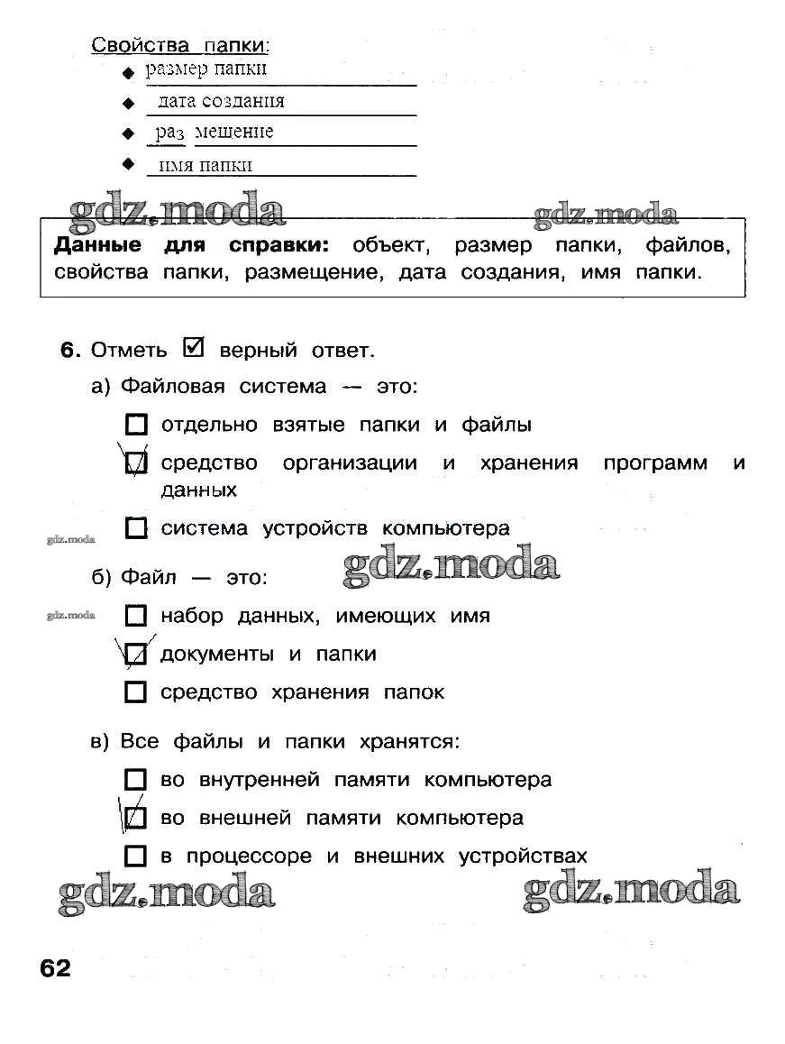ГДЗ решение к заданию № 62 Информатика 3 класс рабочая тетрадь Матвеева Н.В. Бином 2017 Часть 1, Часть 2 ФГОС бесплатно на гдз.мода!