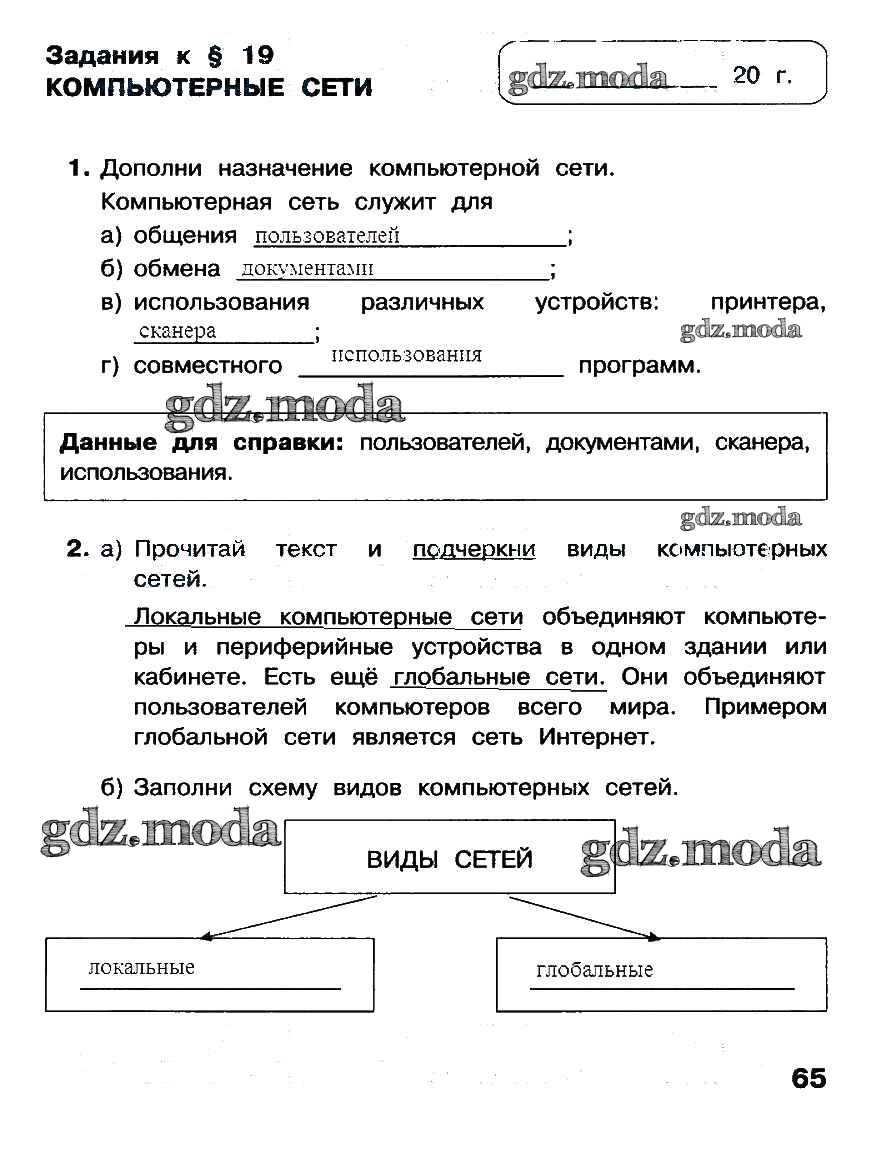 ГДЗ решение к заданию № 65 Информатика 3 класс рабочая тетрадь Матвеева Н.В. Бином 2017 Часть 1, Часть 2 ФГОС бесплатно на гдз.мода!