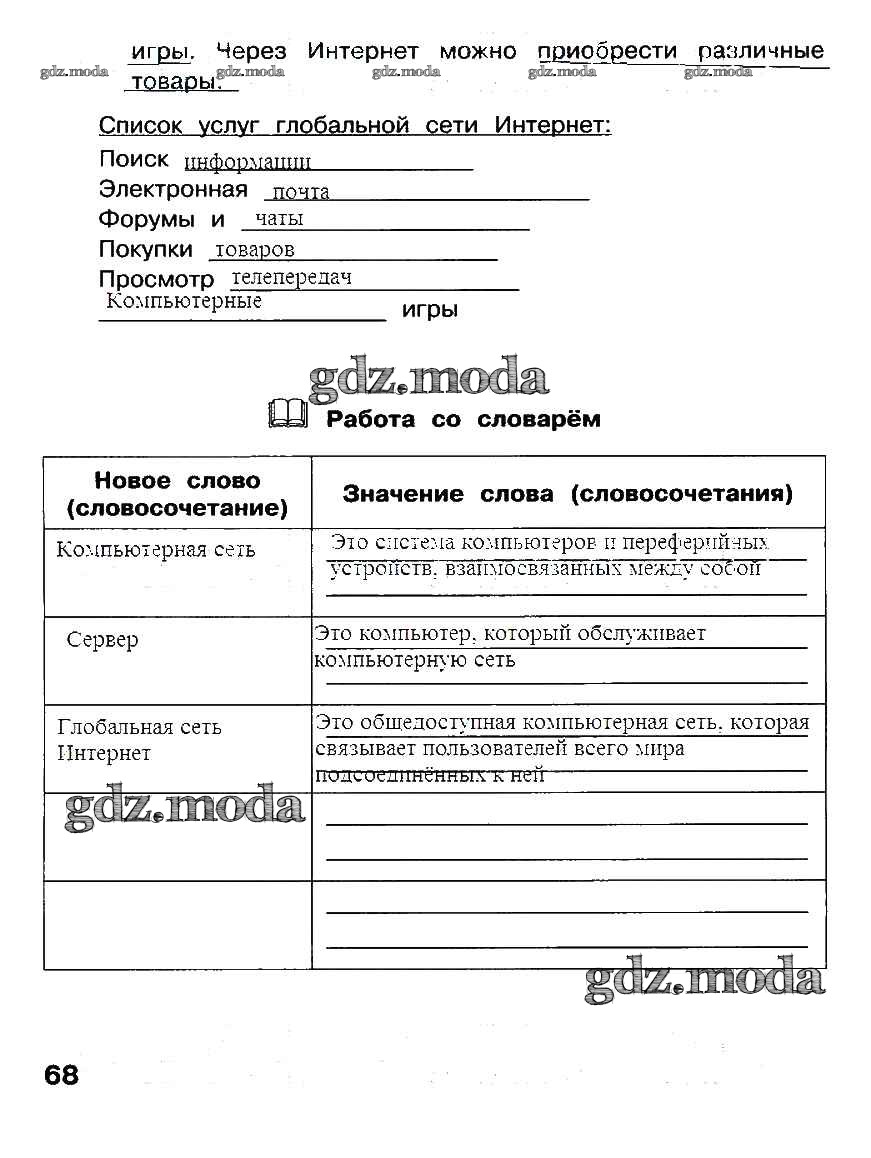 ГДЗ решение к заданию № 68 Информатика 3 класс рабочая тетрадь Матвеева Н.В. Бином 2017 Часть 1, Часть 2 ФГОС бесплатно на гдз.мода!