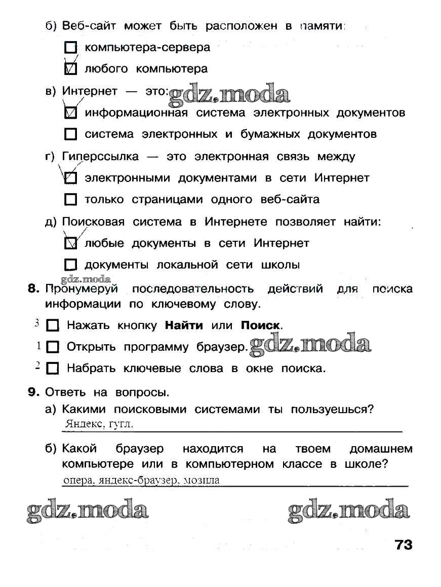 ГДЗ решение к заданию № 73 Информатика 3 класс рабочая тетрадь Матвеева Н.В. Бином 2017 Часть 1, Часть 2 ФГОС бесплатно на гдз.мода!