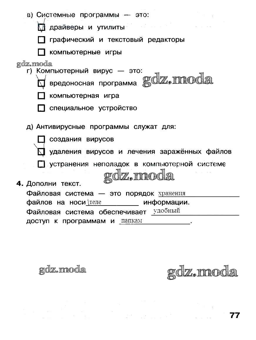 ГДЗ решение к заданию № 77 Информатика 3 класс рабочая тетрадь Матвеева Н.В. Бином 2017 Часть 1, Часть 2 ФГОС бесплатно на гдз.мода!