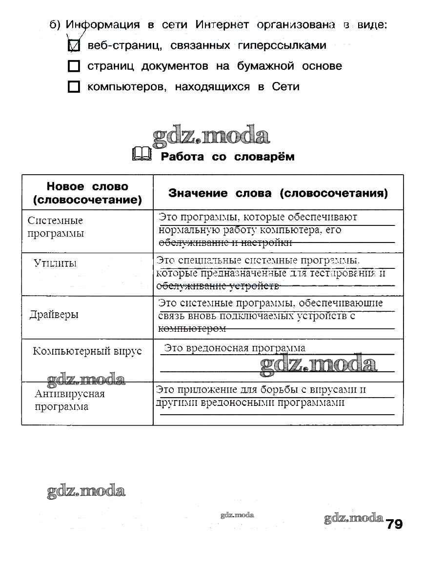 ГДЗ решение к заданию № 79 Информатика 3 класс рабочая тетрадь Матвеева Н.В. Бином 2017 Часть 1, Часть 2 ФГОС бесплатно на гдз.мода!