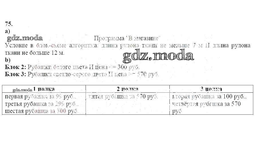ГДЗ решение к заданию № 75 Информатика 3 класс тетрадь для самостоятельной работы Бененсон Е.П. Академкнига 2018 бесплатно на гдз.мода!