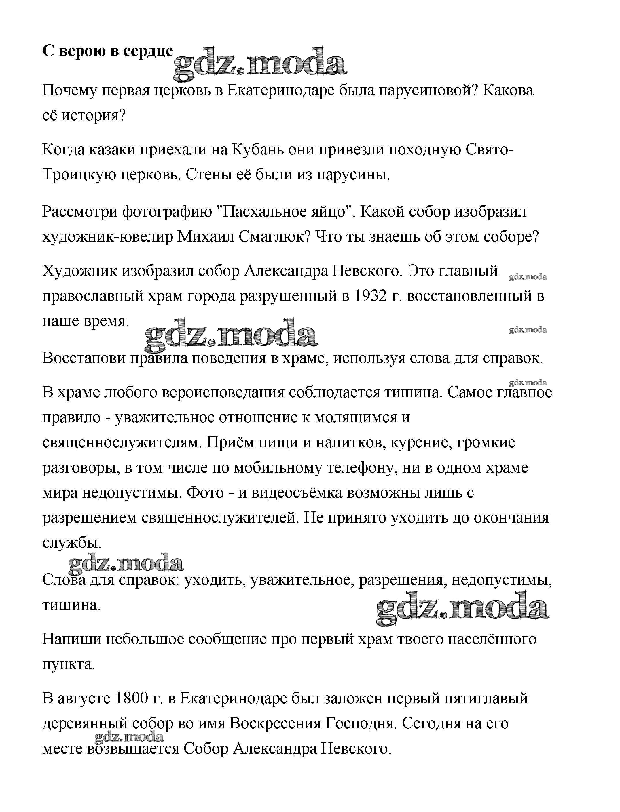 ОТВЕТ на задание № С верою в сердце Рабочая тетрадь по Кубановедению 3 класс Науменко