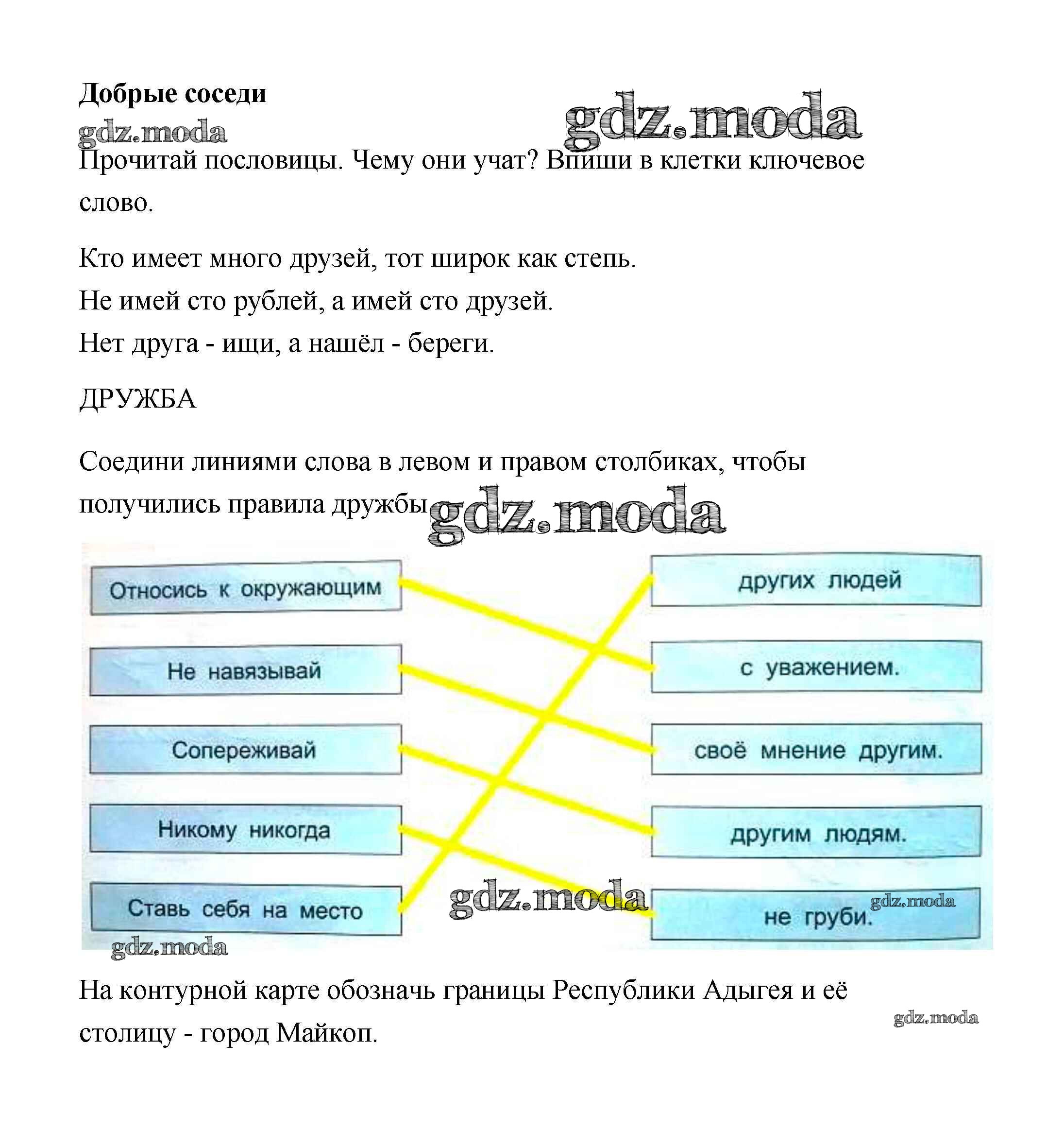 ГДЗ решение к заданию № Добрые соседи Кубановедение 3 класс рабочая тетрадь Науменко Перспективы образования 2017 ФГОС бесплатно на гдз.мода!