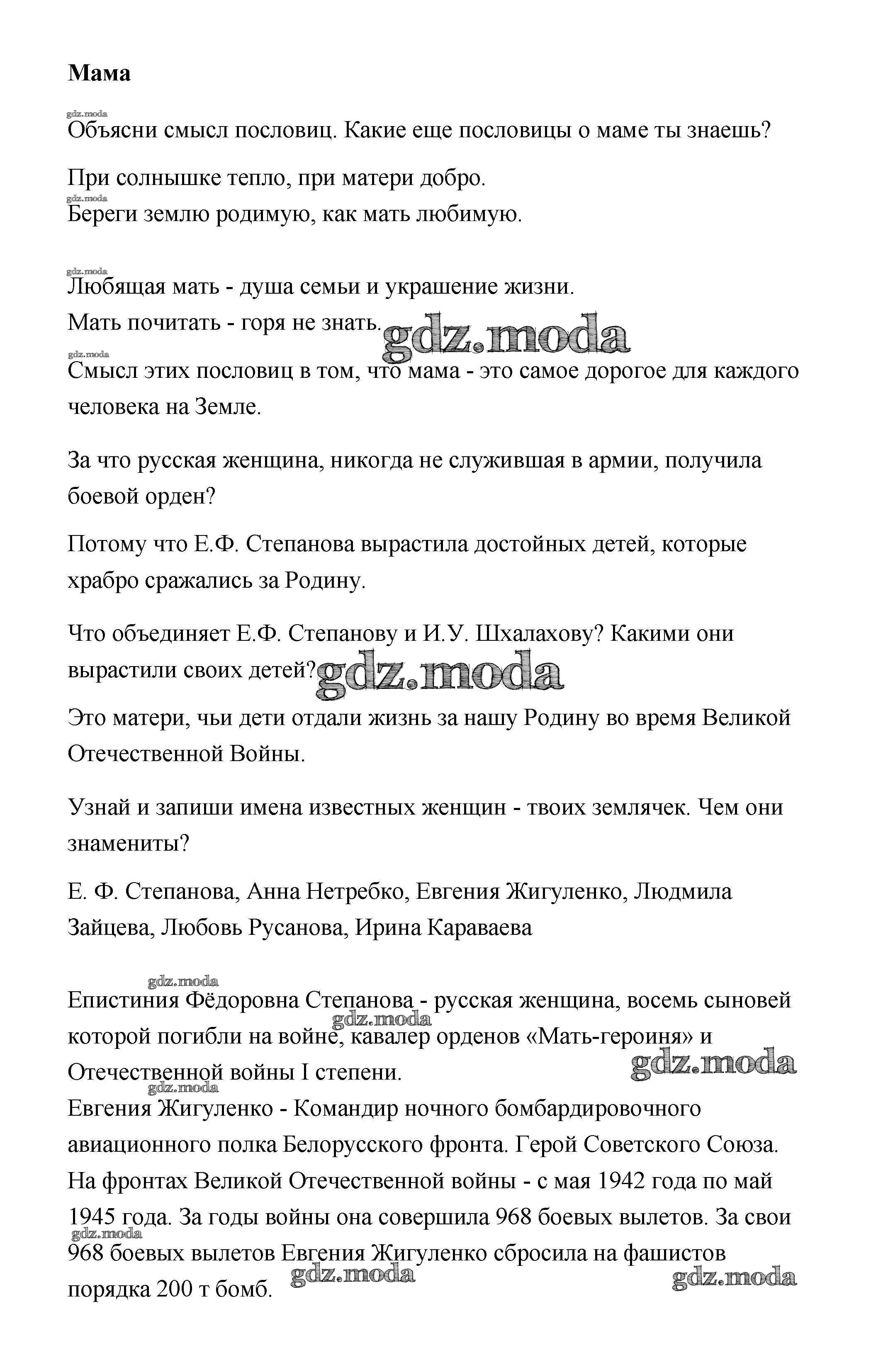 ГДЗ решение к заданию № Мама Кубановедение 3 класс рабочая тетрадь Науменко Перспективы образования 2017 ФГОС бесплатно на гдз.мода!