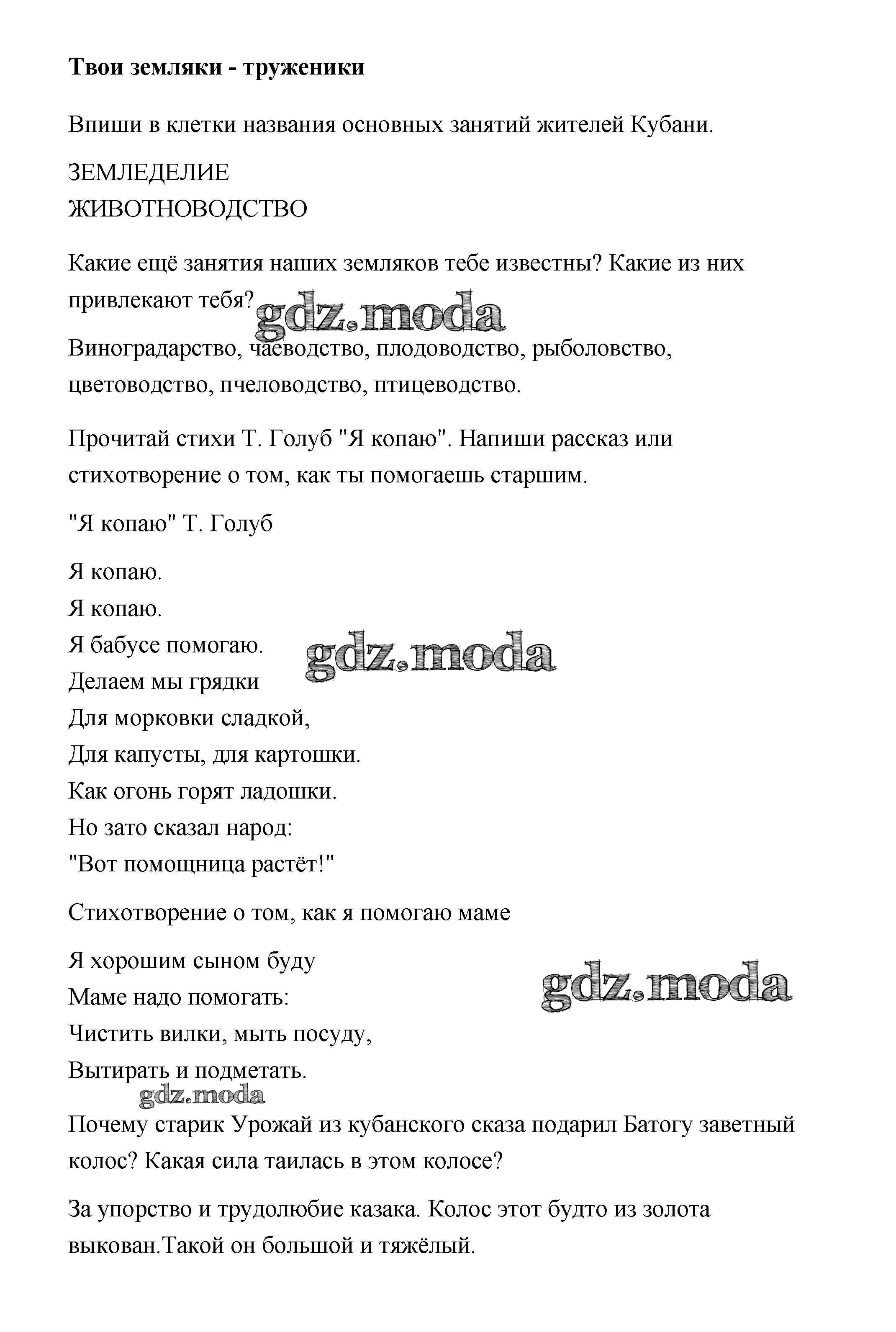 ГДЗ решение к заданию № Твои земляки - труженики Кубановедение 3 класс рабочая тетрадь Науменко Перспективы образования 2017 ФГОС бесплатно на гдз.мода!