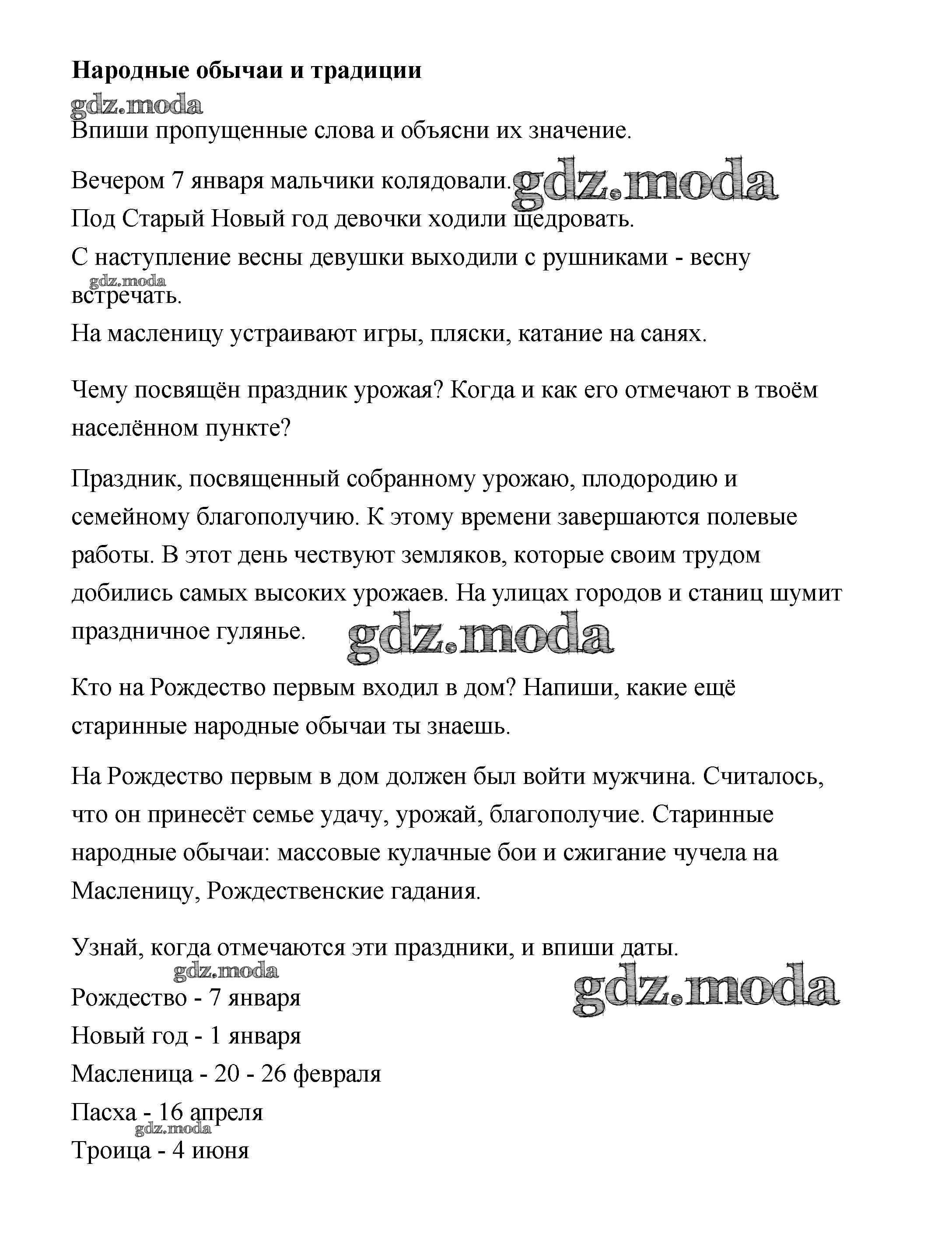 ОТВЕТ на задание № Народные обычаи и традиции Рабочая тетрадь по Кубановедению 3 класс Науменко