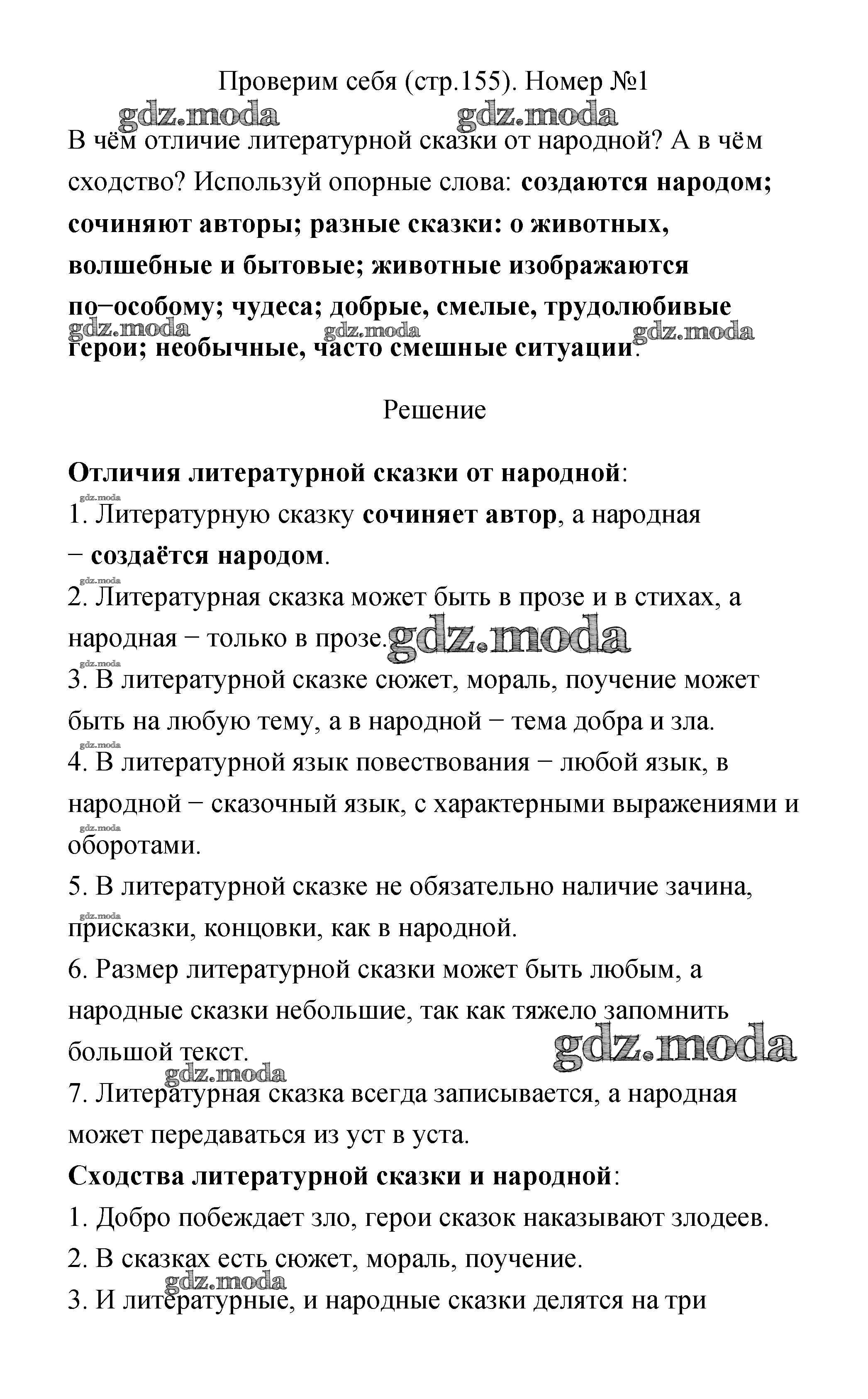 ГДЗ решение к заданию № 155 Литературное чтение 3 класс Климанова (Новый учебник) Просвещение 2020 Часть 1, Часть 2 ФГОС бесплатно на гдз.мода!