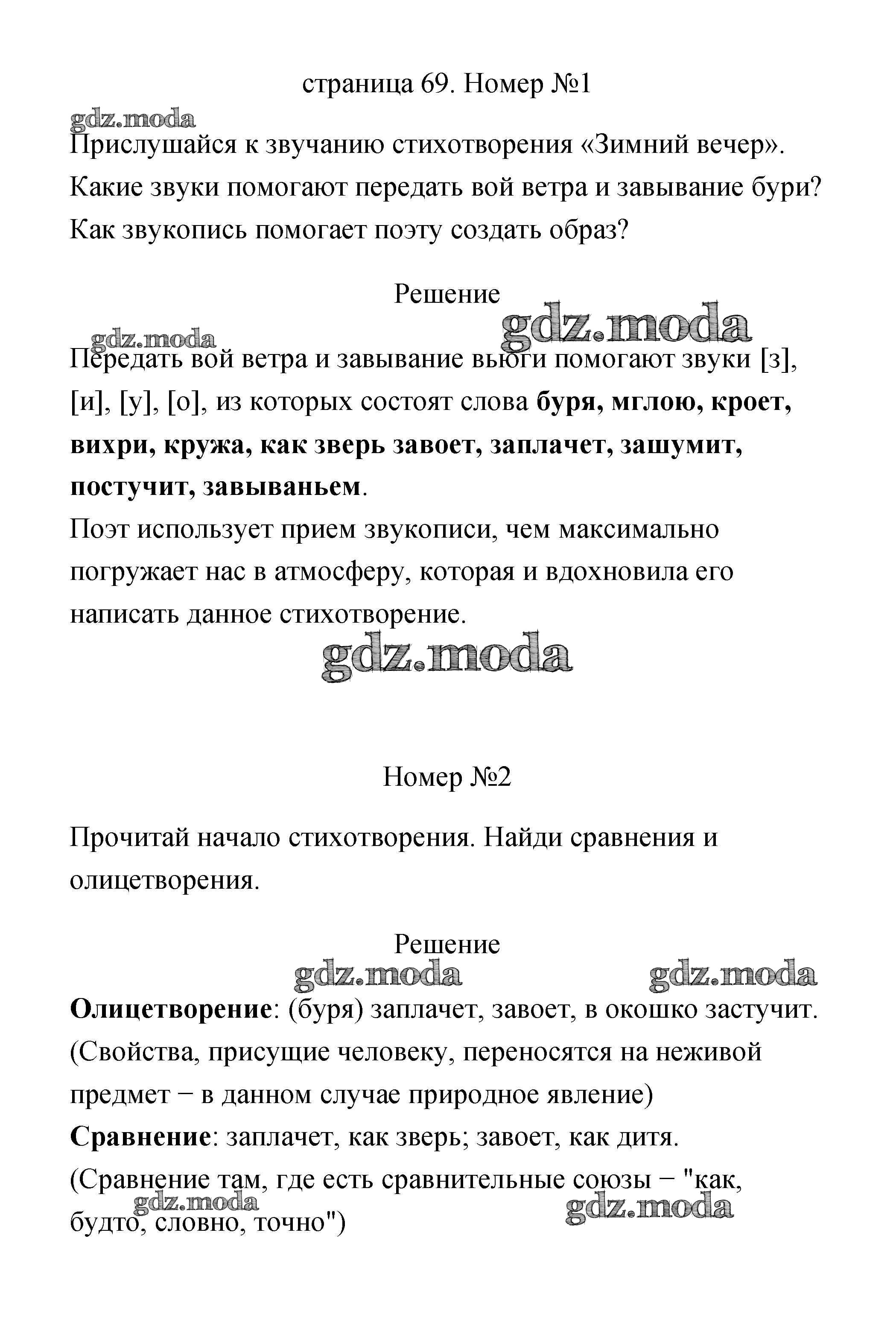 ГДЗ решение к заданию № 69 Литературное чтение 3 класс Климанова (Новый учебник) Просвещение 2020 Часть 1, Часть 2 ФГОС бесплатно на гдз.мода!