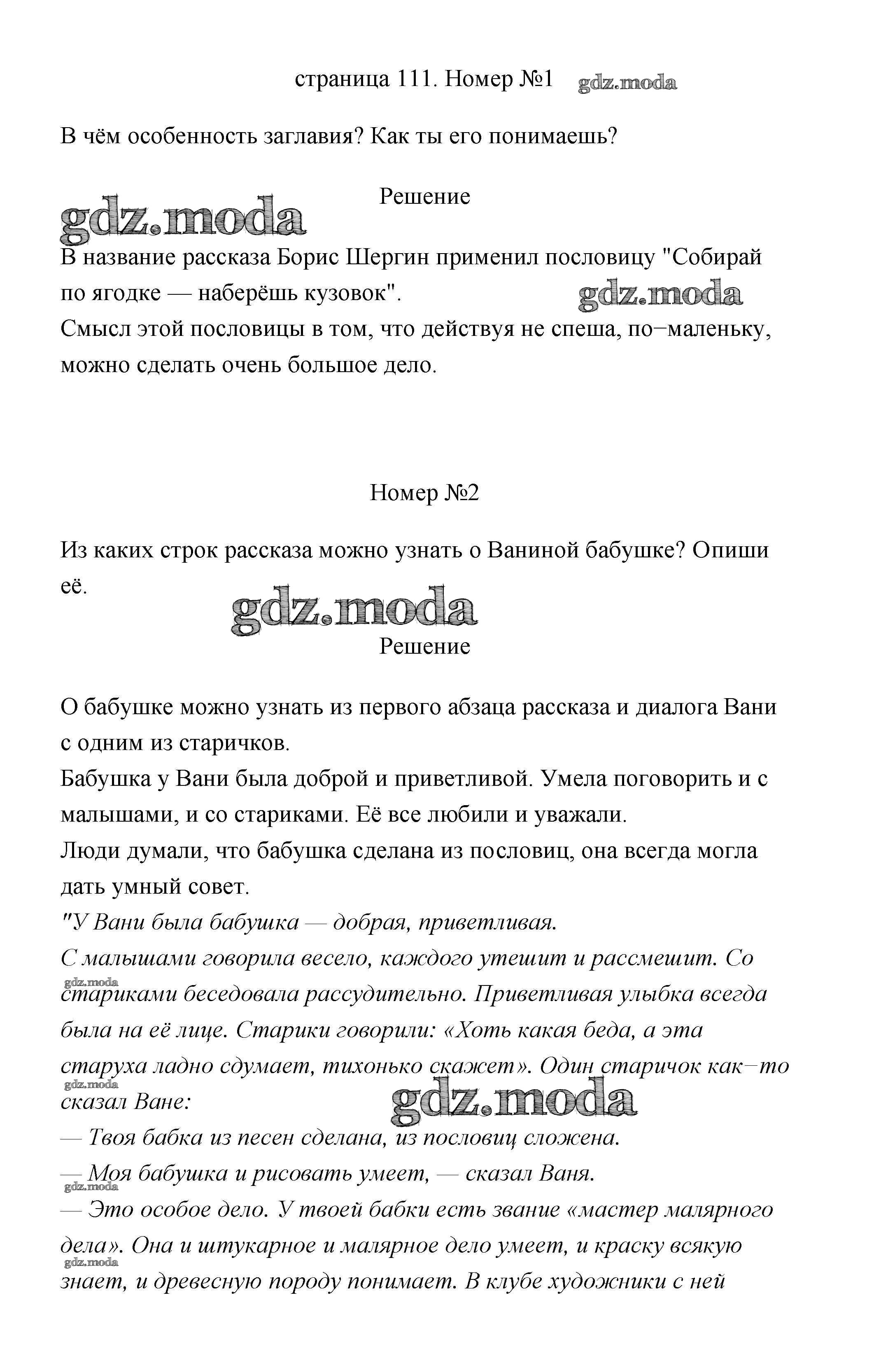 ГДЗ решение к заданию № 111 Литературное чтение 3 класс Климанова (Новый учебник) Просвещение 2020 Часть 1, Часть 2 ФГОС бесплатно на гдз.мода!