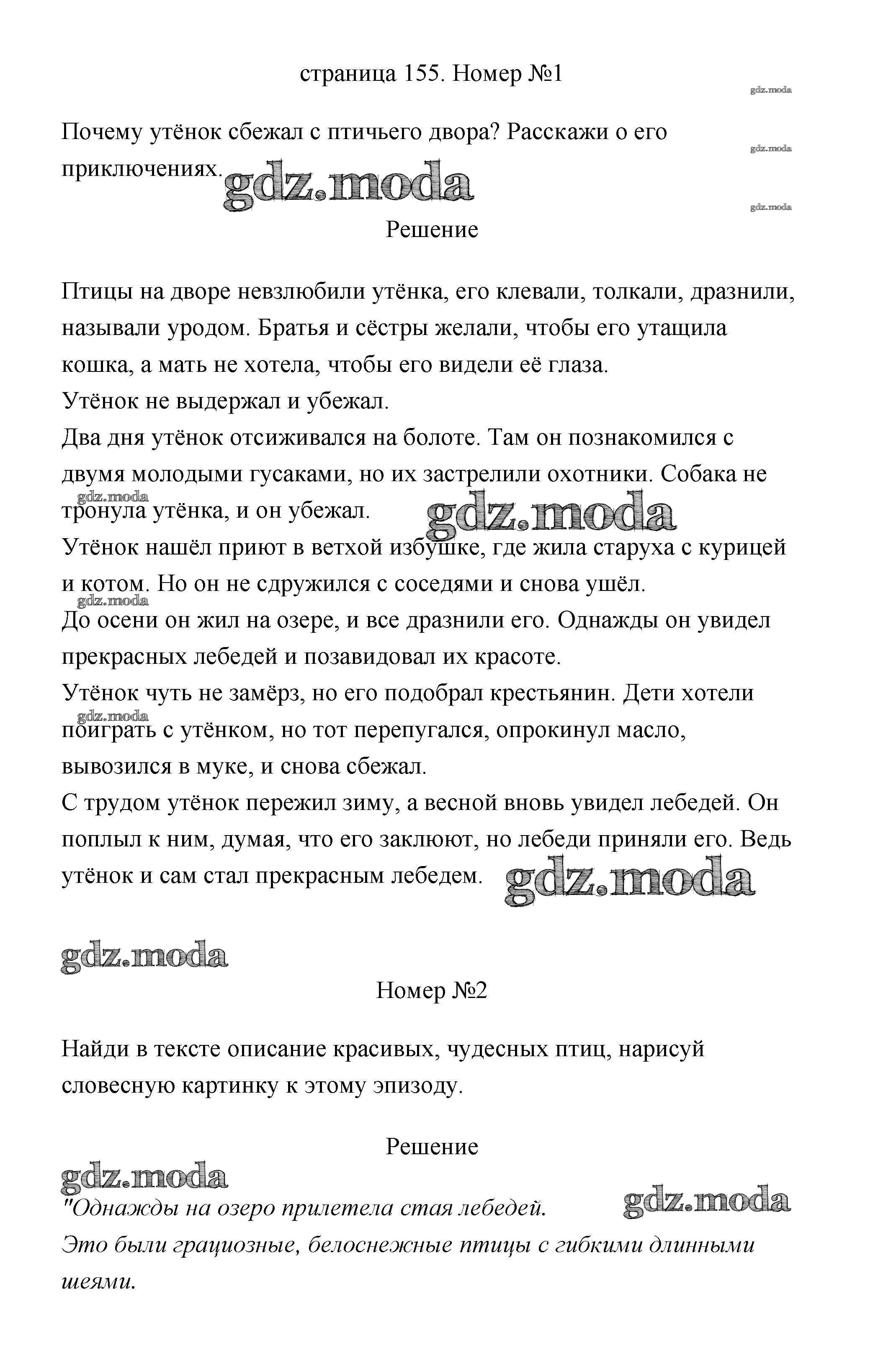 ГДЗ решение к заданию № 155 Литературное чтение 3 класс Климанова (Новый учебник) Просвещение 2020 Часть 1, Часть 2 ФГОС бесплатно на гдз.мода!