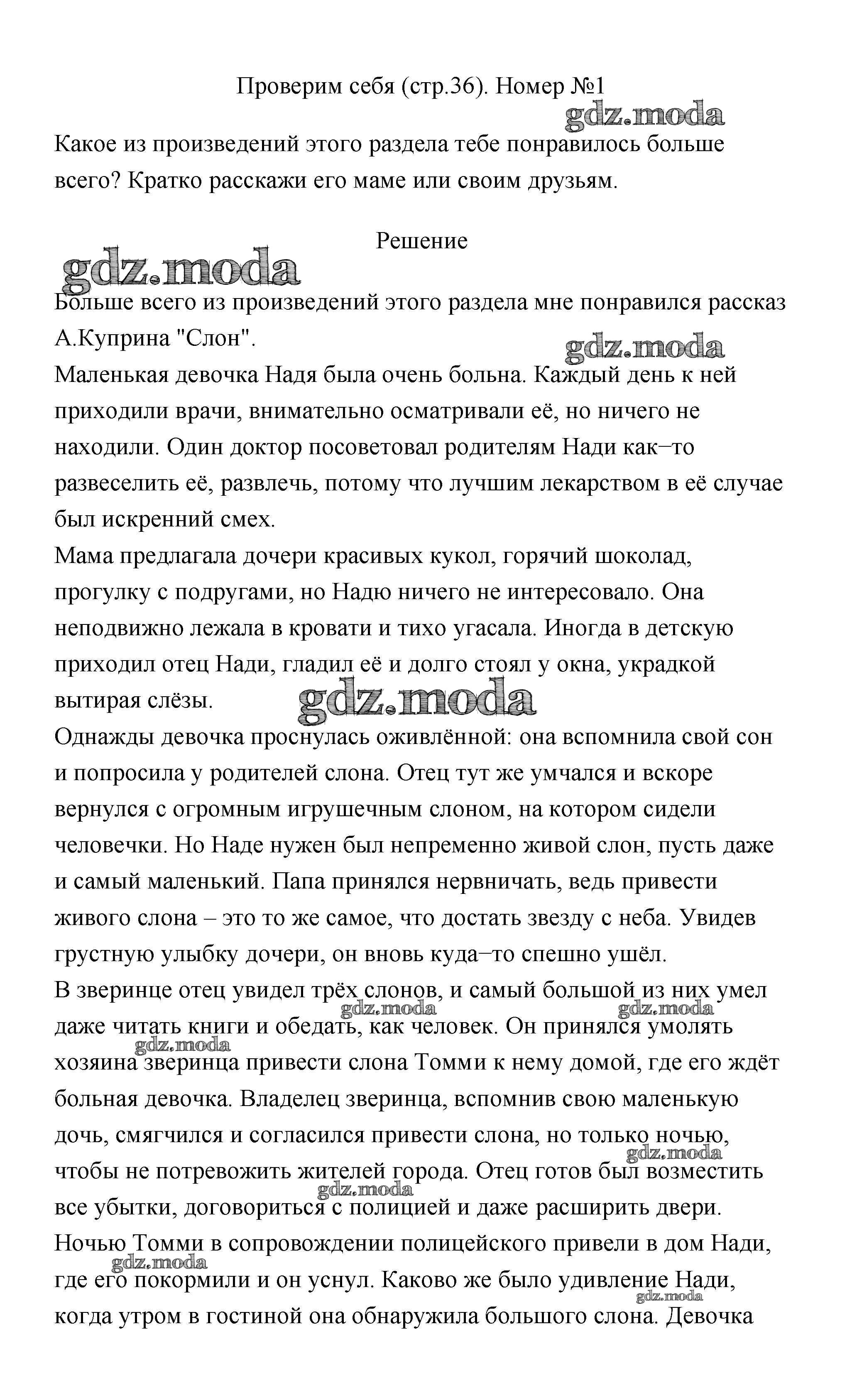 ГДЗ решение к заданию № 36 Литературное чтение 3 класс Климанова (Новый учебник) Просвещение 2020 Часть 1, Часть 2 ФГОС бесплатно на гдз.мода!