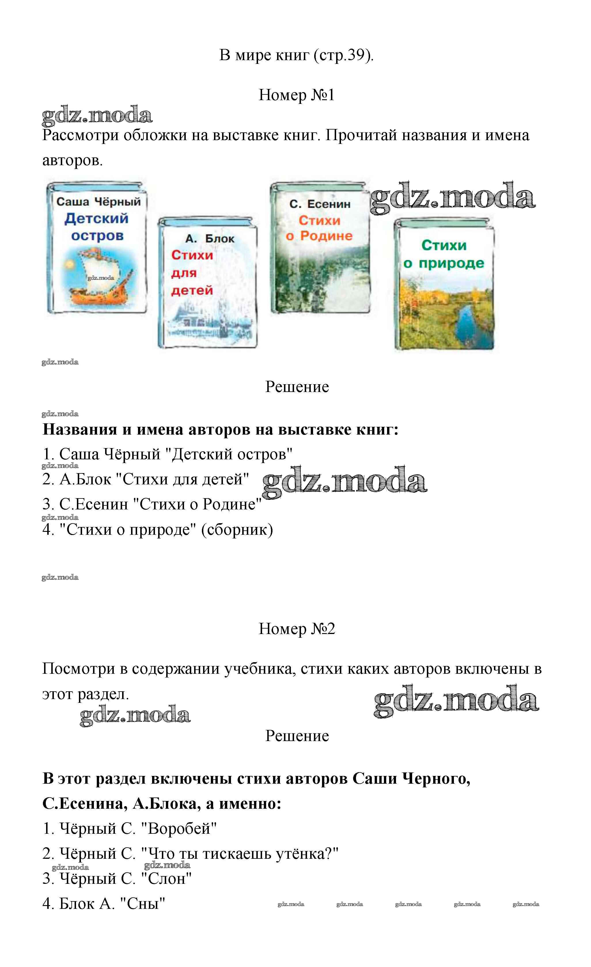 ГДЗ решение к заданию № 39 Литературное чтение 3 класс Климанова (Новый учебник) Просвещение 2020 Часть 1, Часть 2 ФГОС бесплатно на гдз.мода!