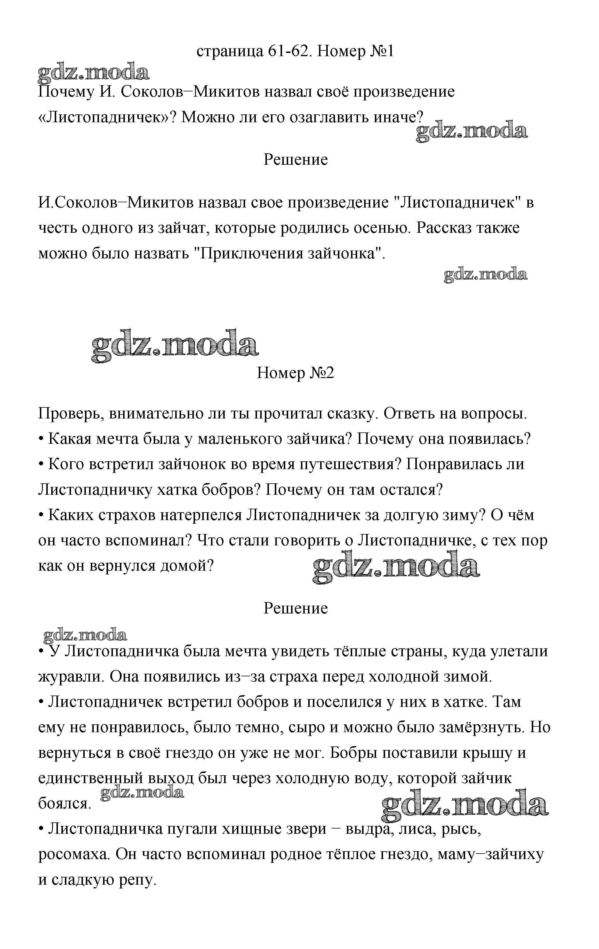 ГДЗ решение к заданию № 61 Литературное чтение 3 класс Климанова (Новый учебник) Просвещение 2020 Часть 1, Часть 2 ФГОС бесплатно на гдз.мода!