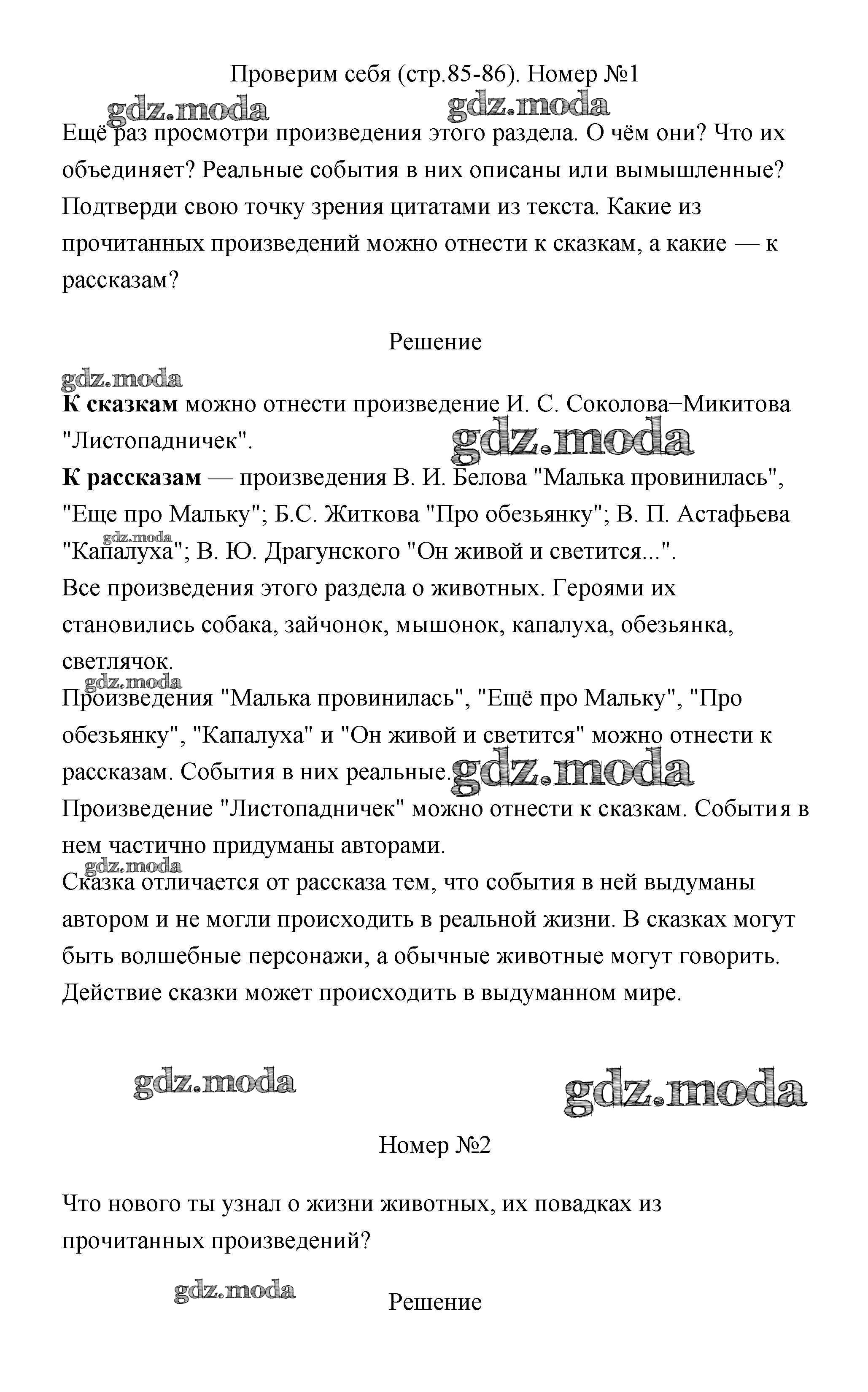 ГДЗ решение к заданию № 85 Литературное чтение 3 класс Климанова (Новый учебник) Просвещение 2020 Часть 1, Часть 2 ФГОС бесплатно на гдз.мода!