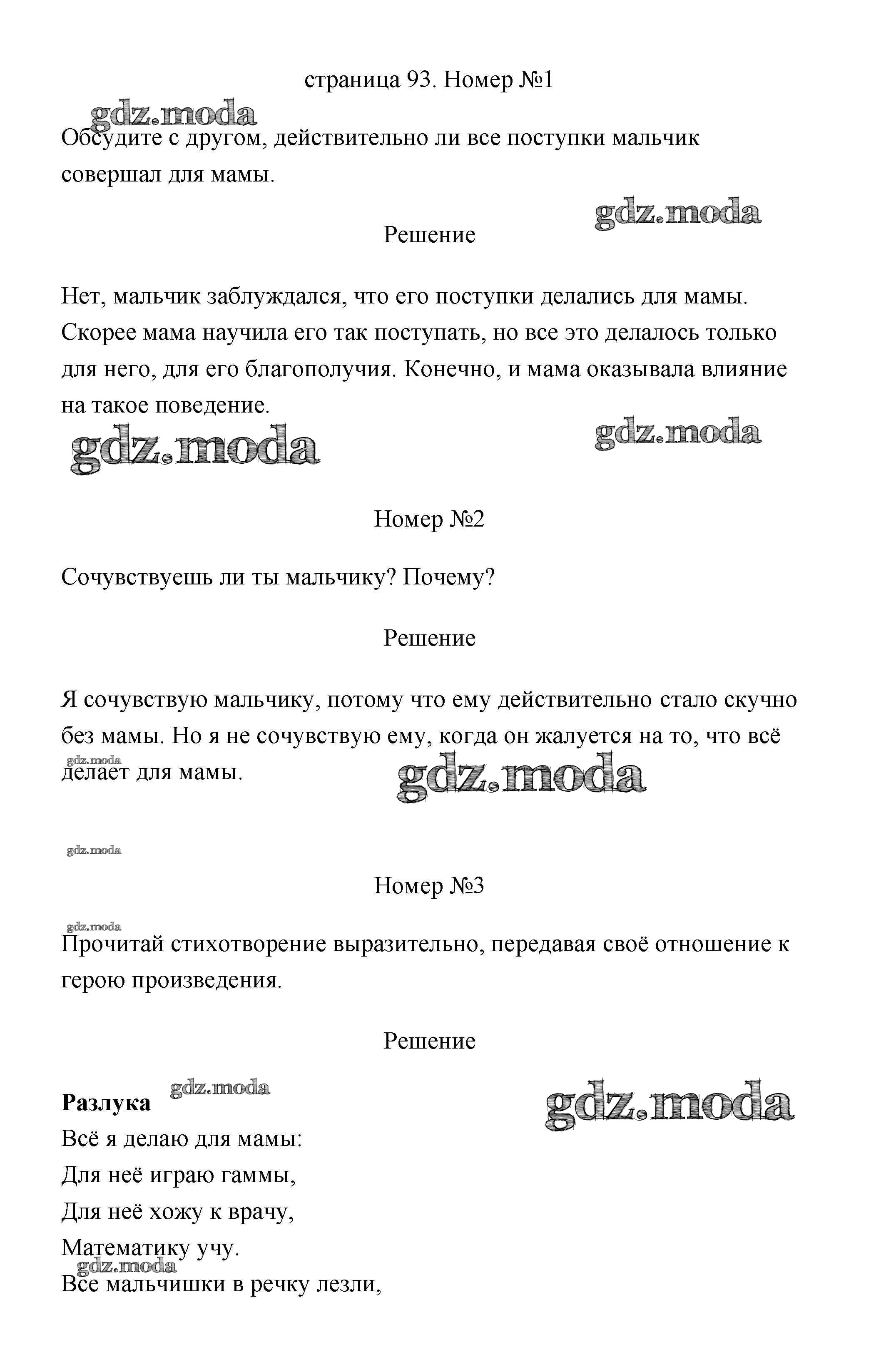 ГДЗ решение к заданию № 93 Литературное чтение 3 класс Климанова (Новый учебник) Просвещение 2020 Часть 1, Часть 2 ФГОС бесплатно на гдз.мода!