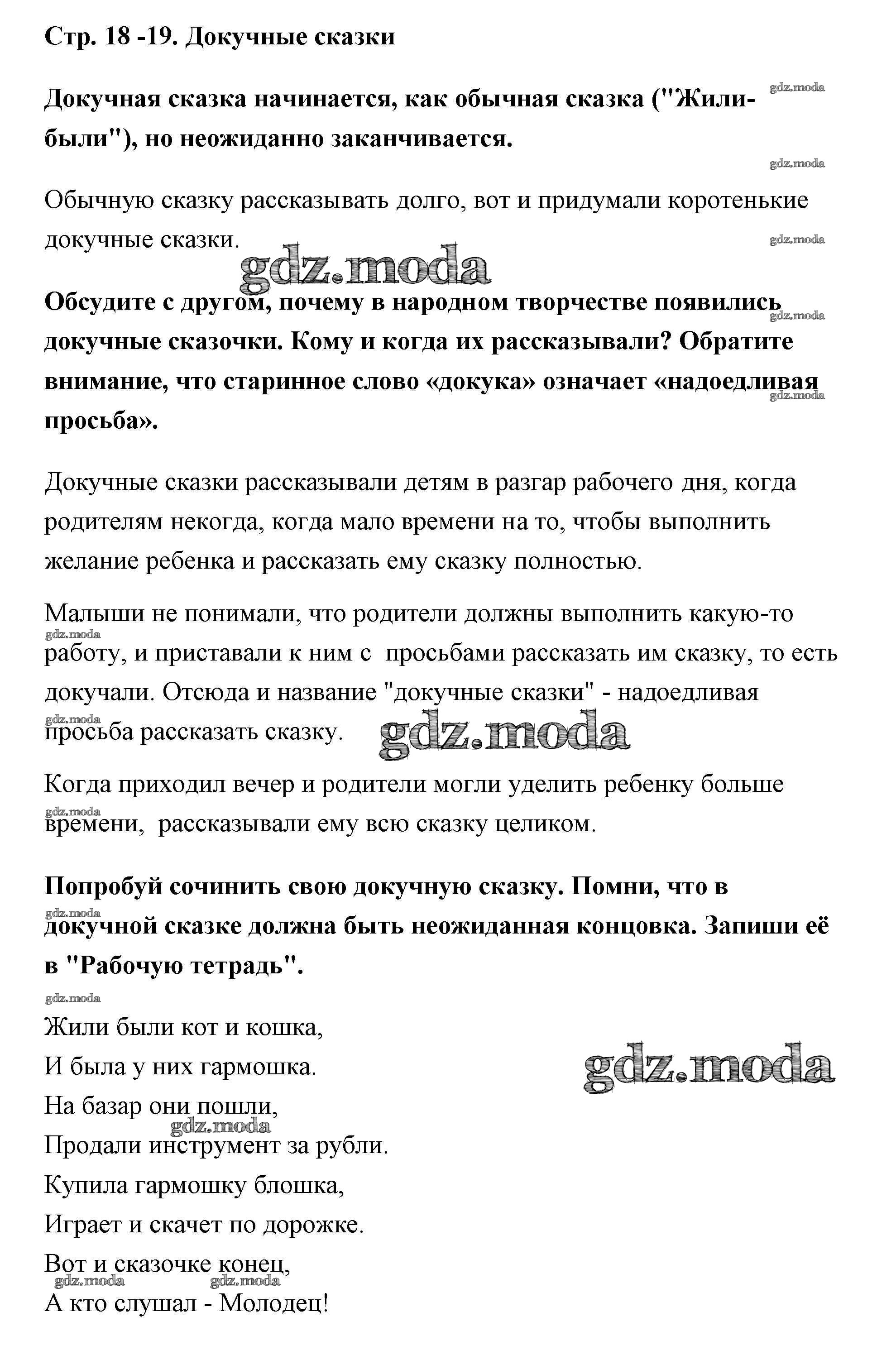 ГДЗ решение к заданию № 18-19 Литературное чтение 3 класс Климанова Просвещение 2018 Часть 1, Часть 2 ФГОС бесплатно на гдз.мода!