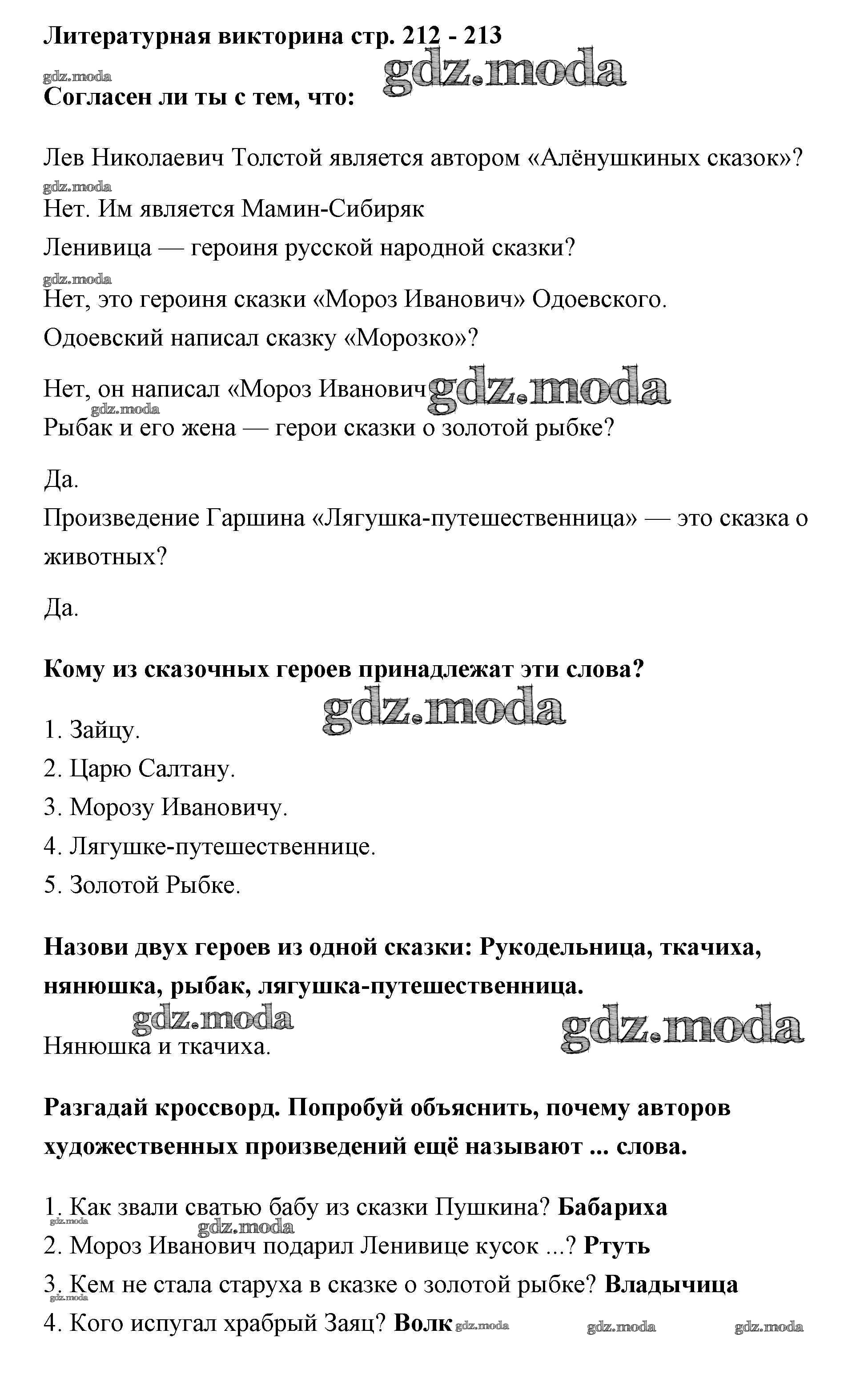 ОТВЕТ на задание № 212 Учебник по Литературе 3 класс Климанова Школа России