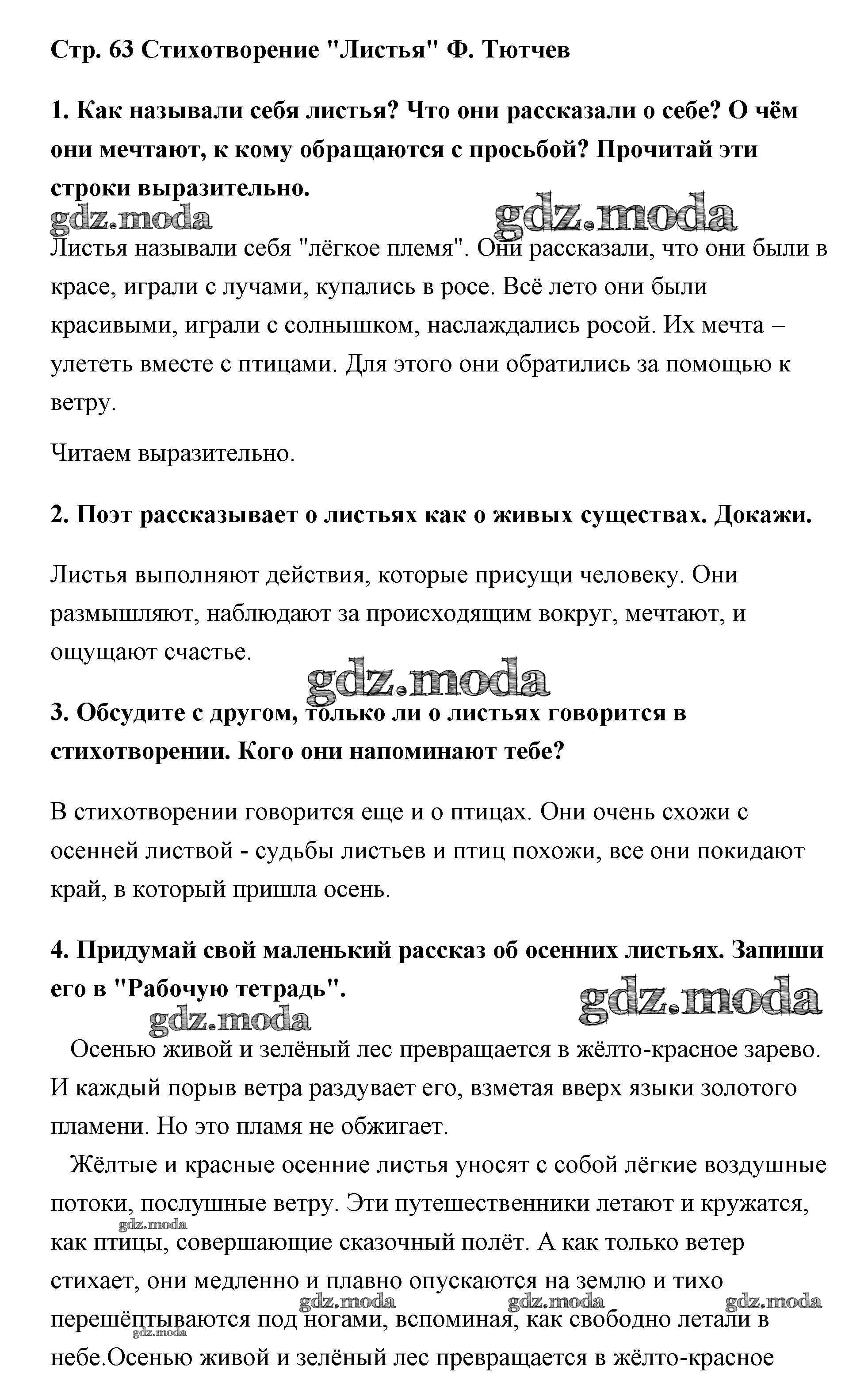 ГДЗ решение к заданию № 63 Литературное чтение 3 класс Климанова Просвещение 2018 Часть 1, Часть 2 ФГОС бесплатно на гдз.мода!