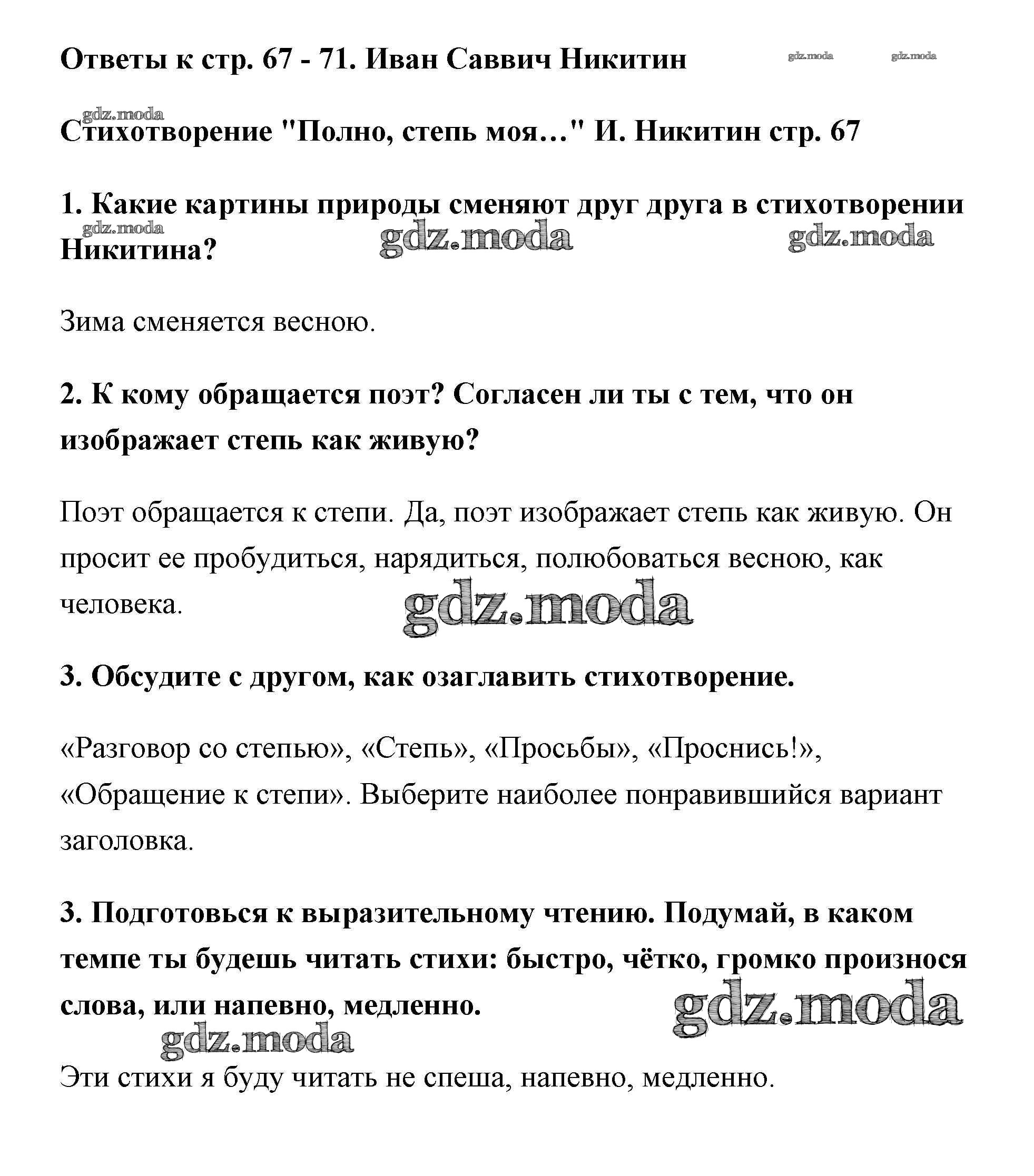 ОТВЕТ на задание № 67-71 Учебник по Литературе 3 класс Климанова Школа России