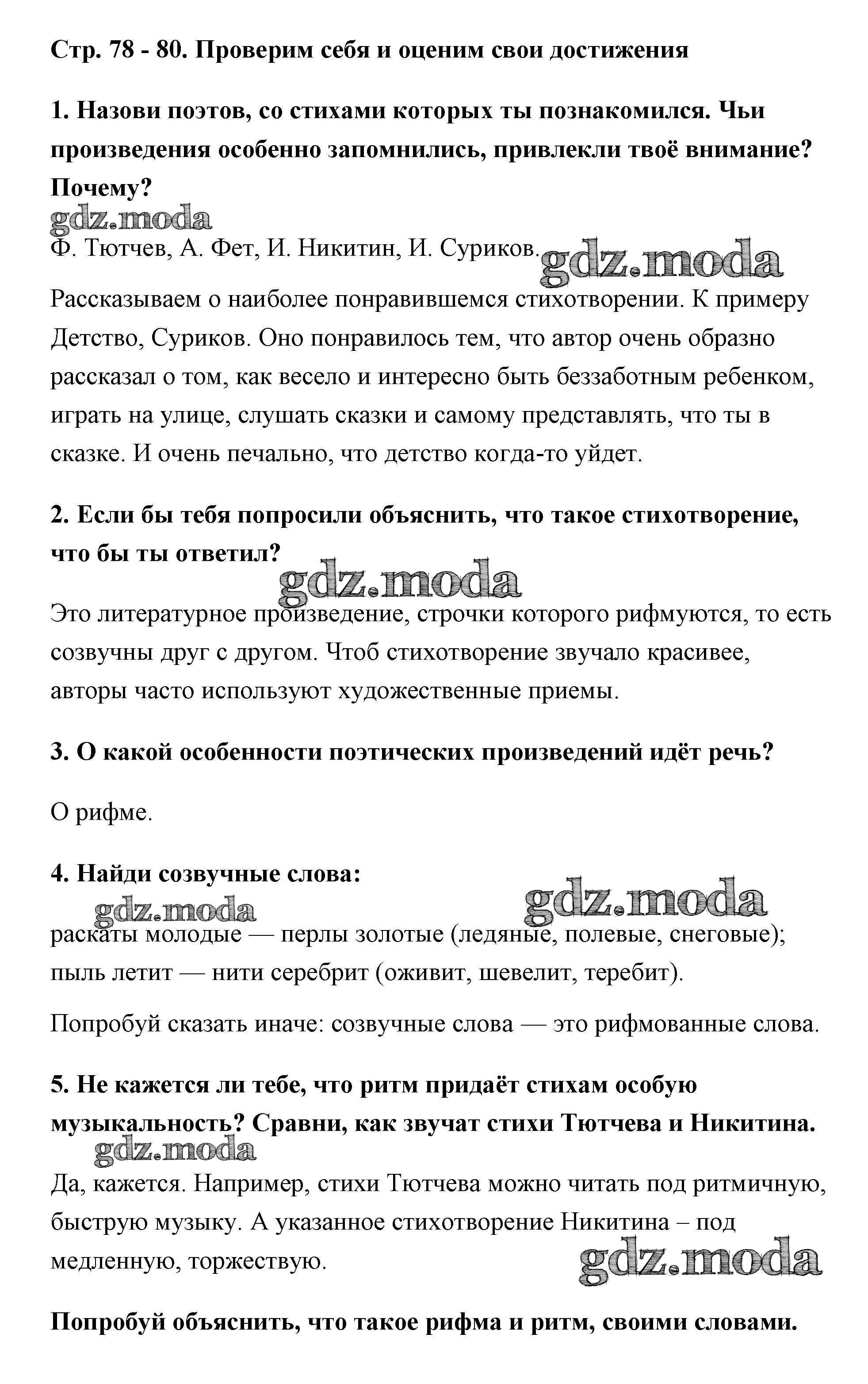 ГДЗ решение к заданию № 78-80 Литературное чтение 3 класс Климанова Просвещение 2018 Часть 1, Часть 2 ФГОС бесплатно на гдз.мода!