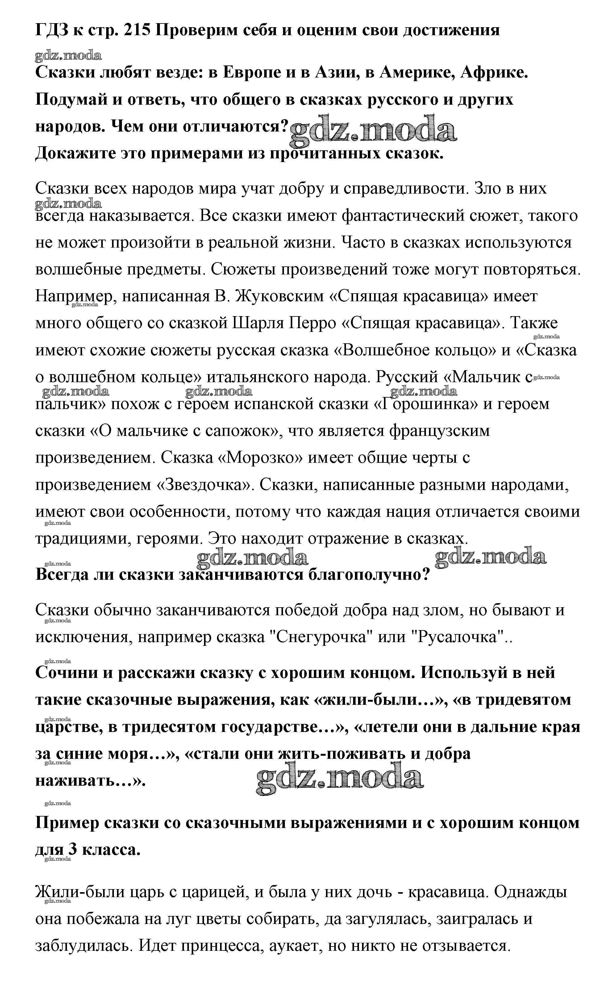 ГДЗ решение к заданию № 215 Литературное чтение 3 класс Климанова Просвещение 2018 Часть 1, Часть 2 ФГОС бесплатно на гдз.мода!