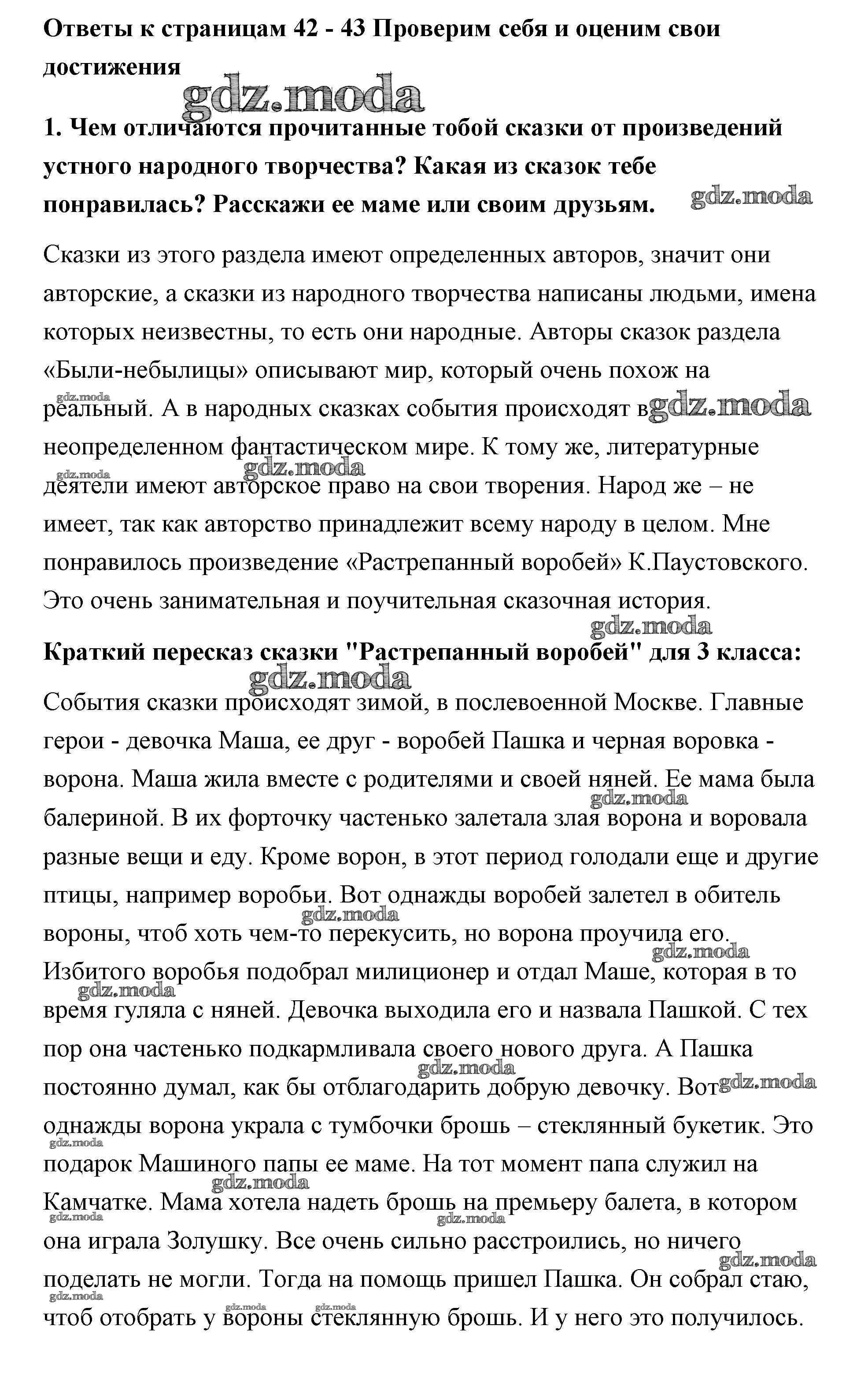 ОТВЕТ на задание № 42-43 Учебник по Литературе 3 класс Климанова Школа России