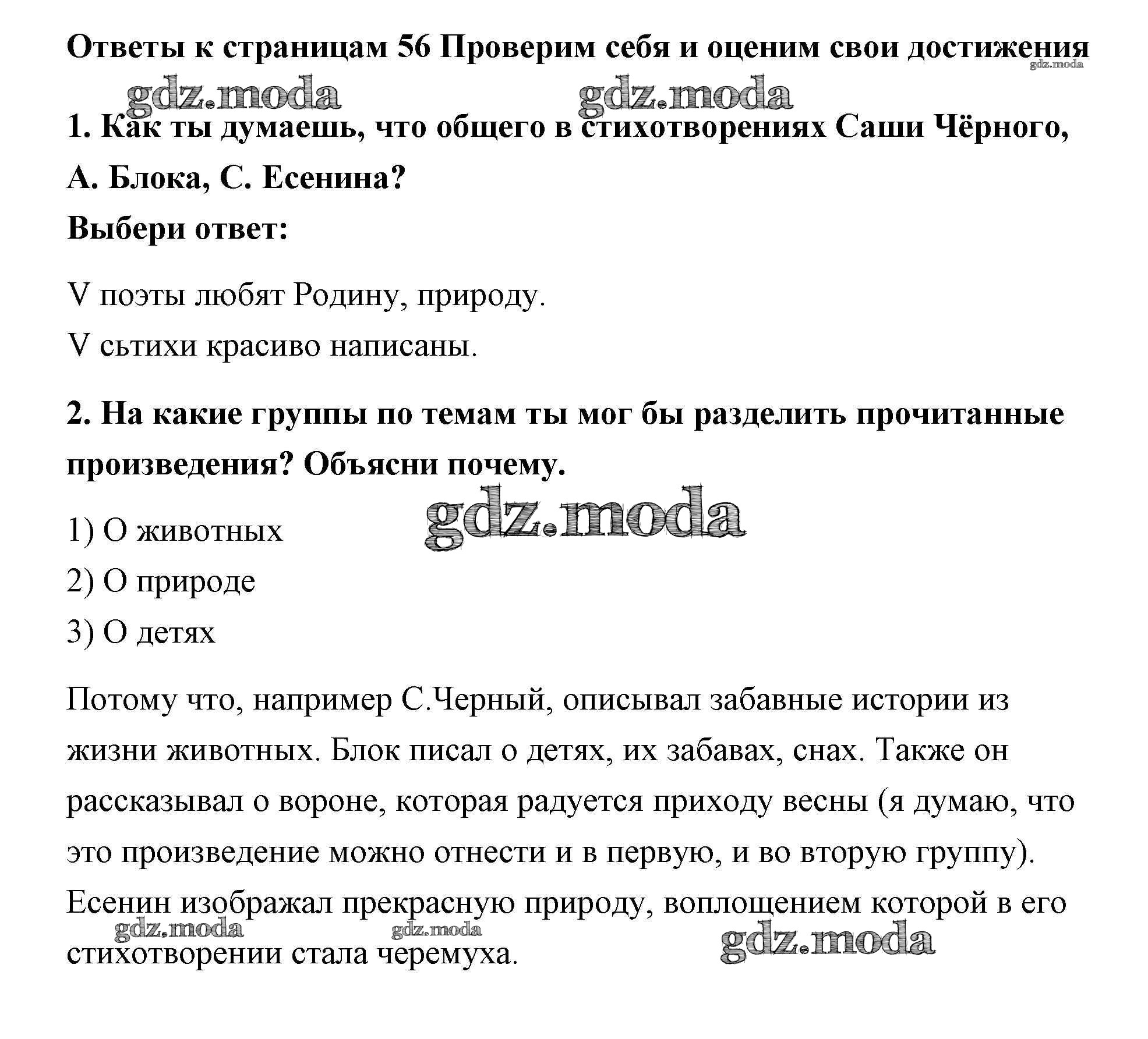 ГДЗ решение к заданию № 56 Литературное чтение 3 класс Климанова Просвещение 2018 Часть 1, Часть 2 ФГОС бесплатно на гдз.мода!