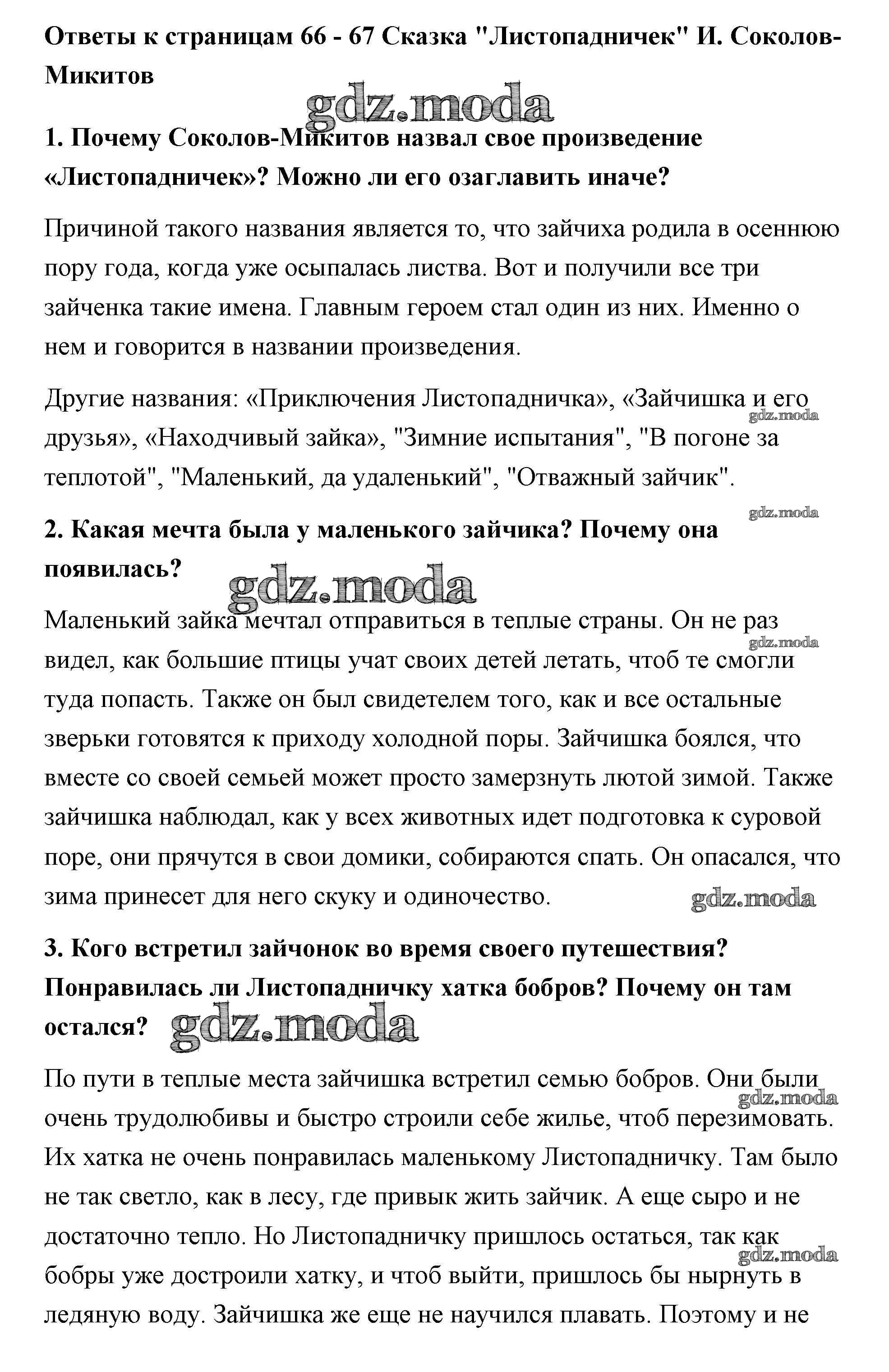 ОТВЕТ на задание № 66 Учебник по Литературе 3 класс Климанова Школа России