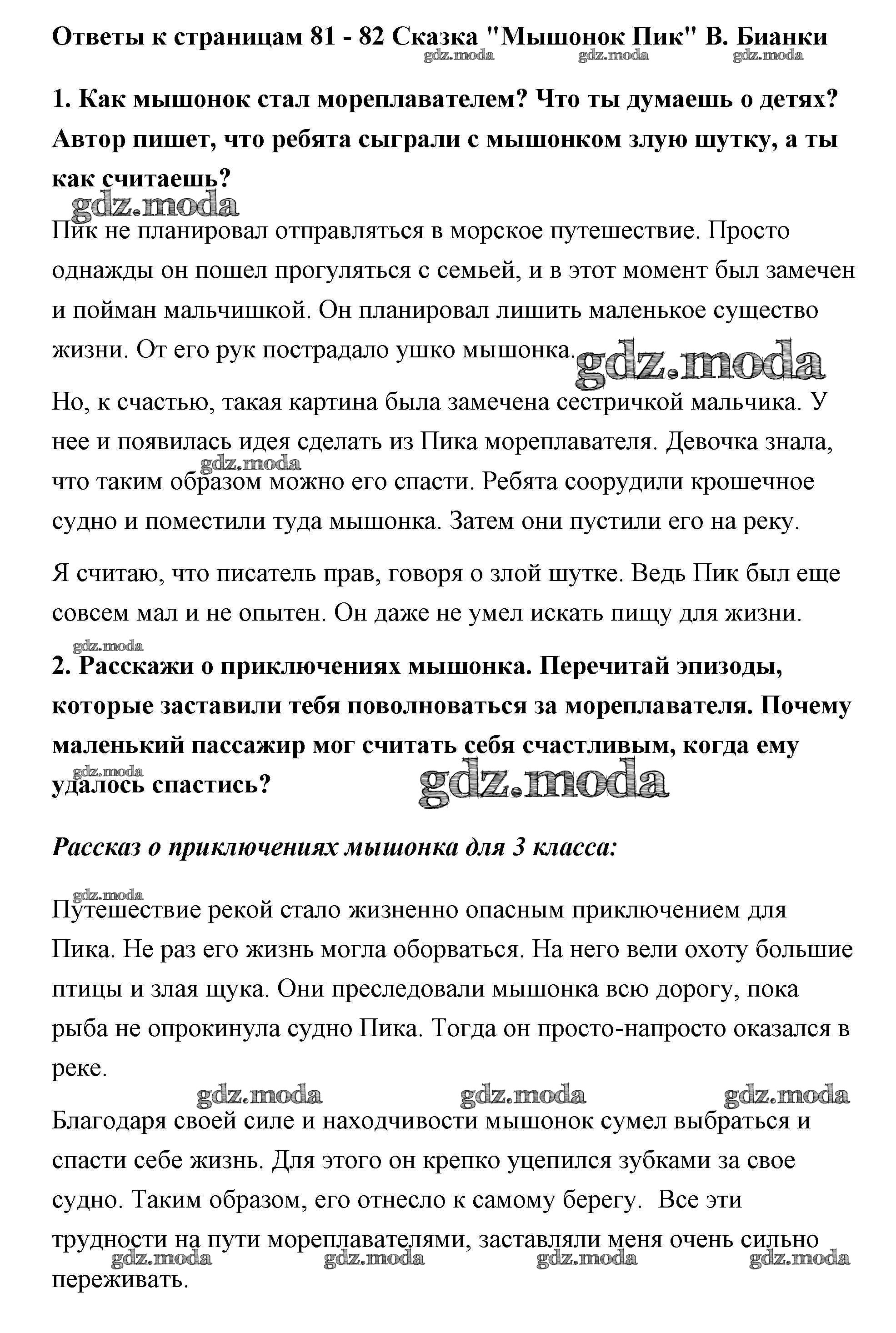 ОТВЕТ на задание № 81-82 Учебник по Литературе 3 класс Климанова Школа России