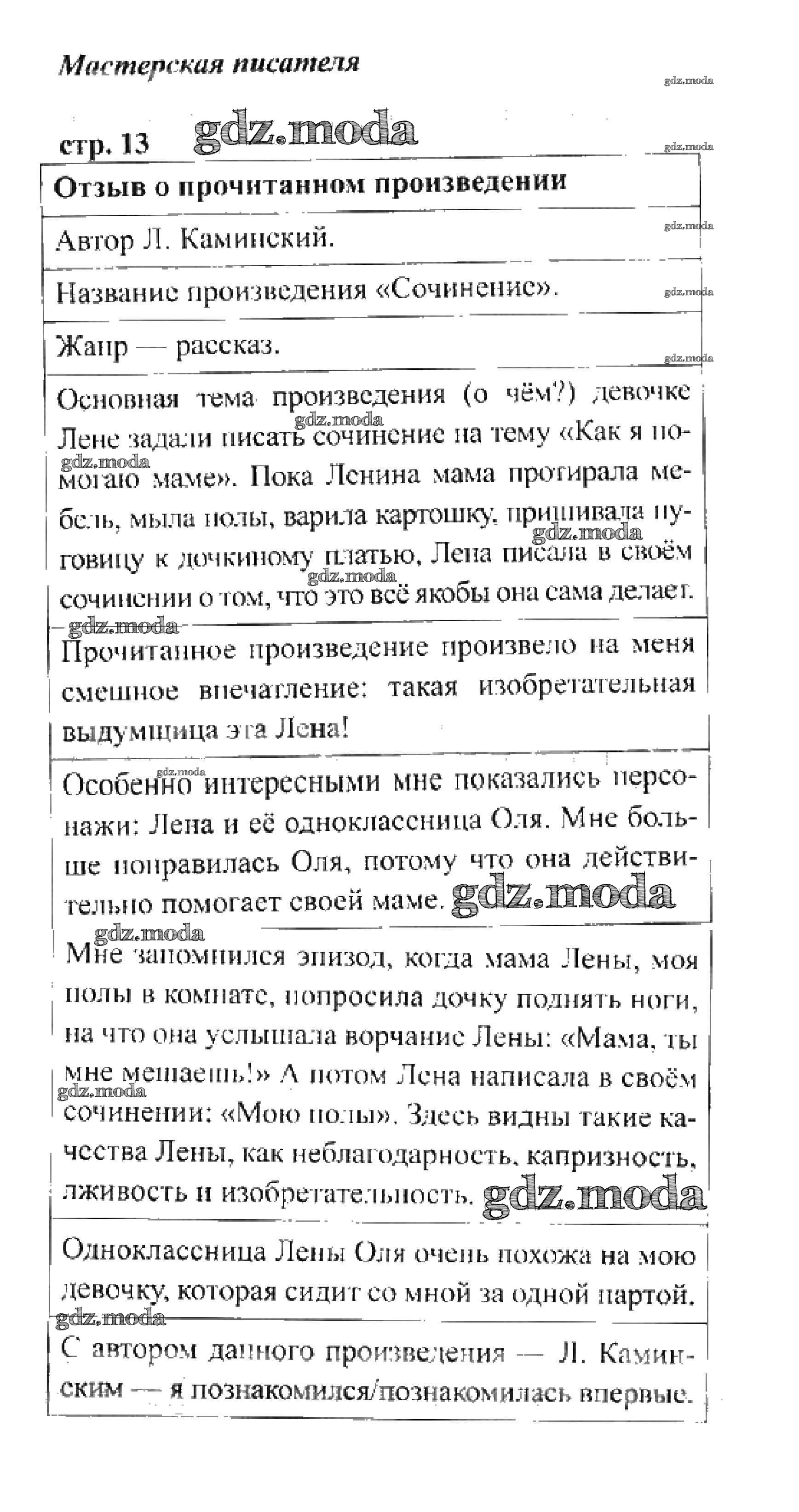 ГДЗ решение к заданию № 13 Литературное чтение 3 класс творческая тетрадь Коти Просвещение 2015 ФГОС бесплатно на гдз.мода!
