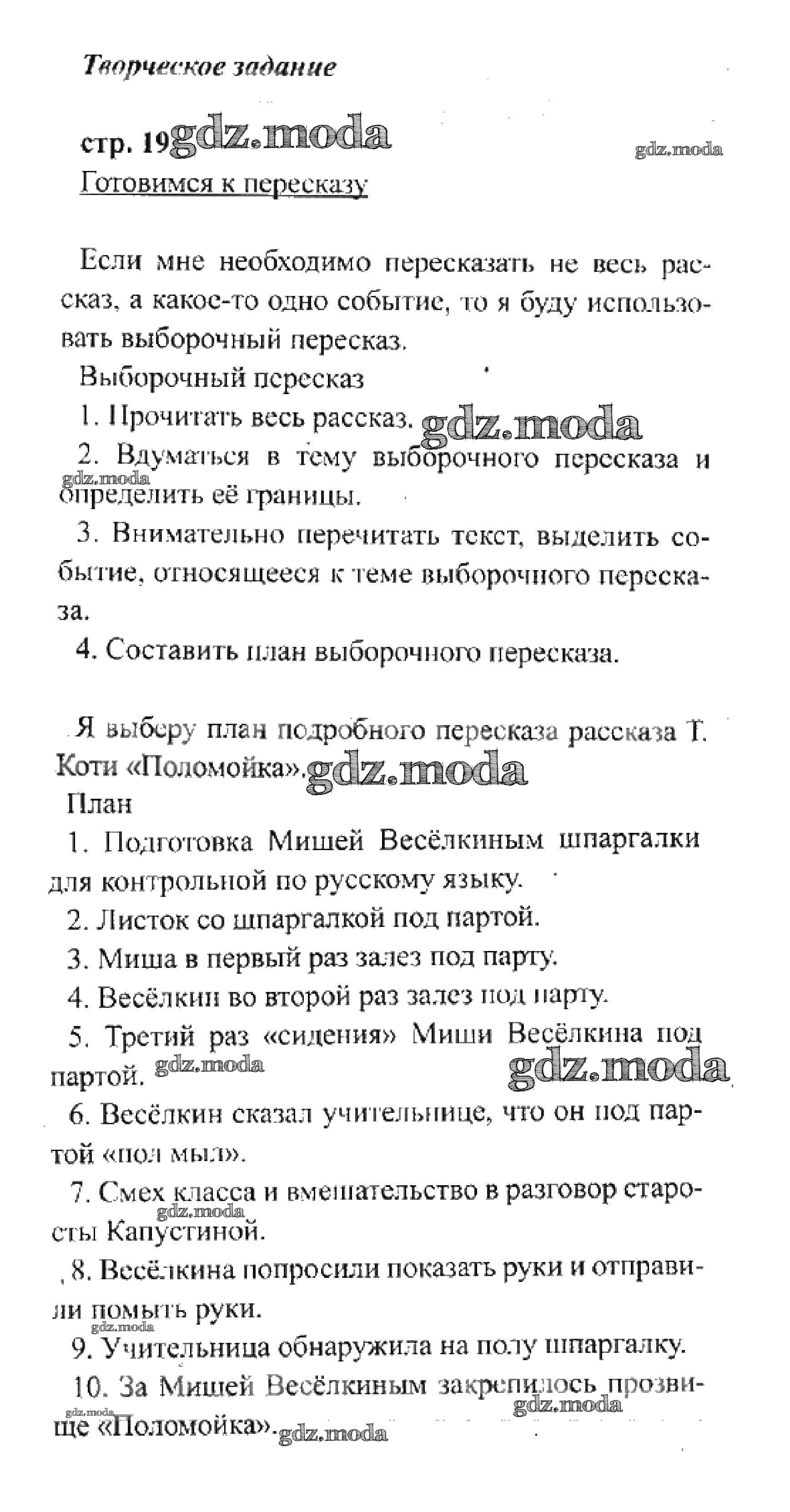 ГДЗ решение к заданию № 19 Литературное чтение 3 класс творческая тетрадь Коти Просвещение 2015 ФГОС бесплатно на гдз.мода!