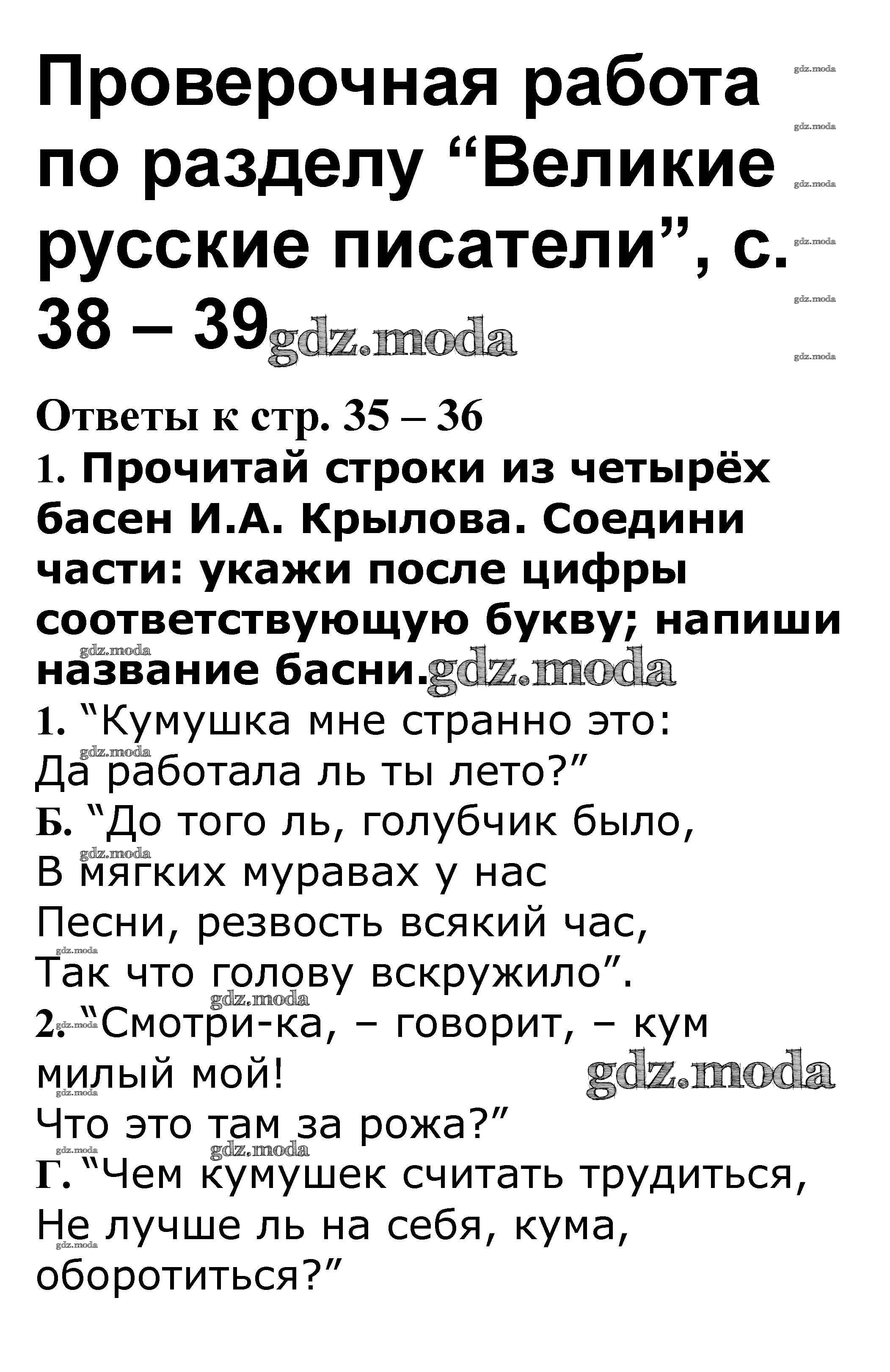 ГДЗ решение к заданию № 38-39 Литературное чтение 3 класс рабочая тетрадь Кутявина С.В. ВАКО 2019 ФГОС бесплатно на гдз.мода!
