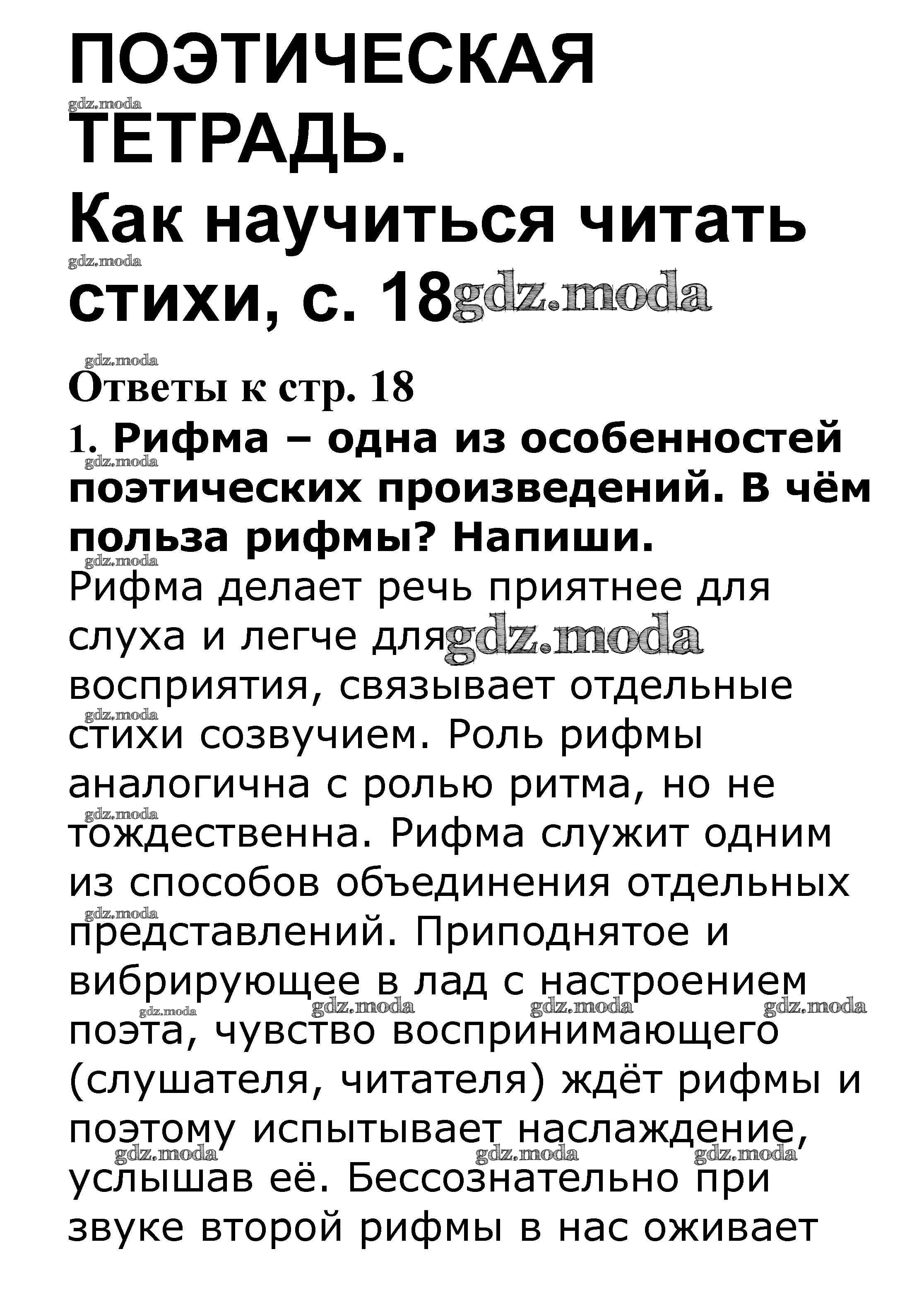 ГДЗ решение к заданию № 18 Литературное чтение 3 класс рабочая тетрадь Кутявина С.В. ВАКО 2019 ФГОС бесплатно на гдз.мода!