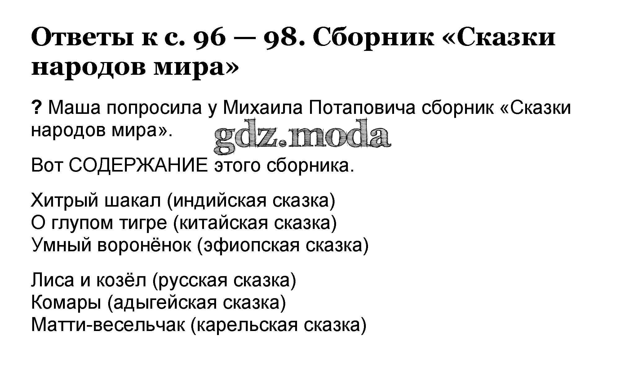 ОТВЕТ на задание № 96-98 Учебник по Литературе 3 класс Чуракова Перспективная начальная школа