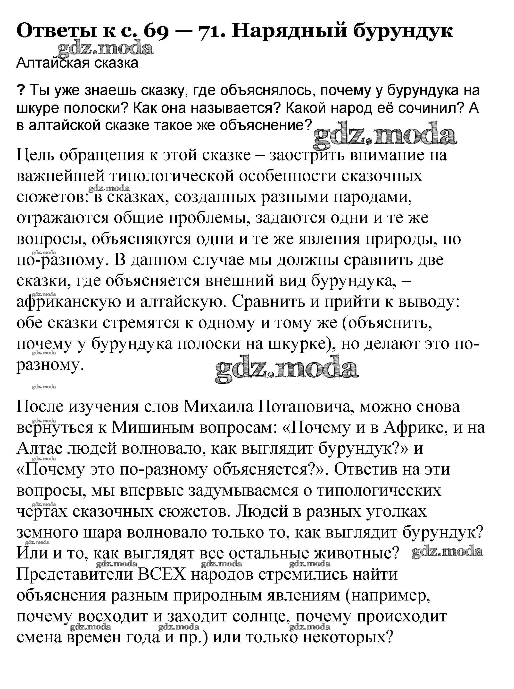 ОТВЕТ на задание № 69-71 Учебник по Литературе 3 класс Чуракова Перспективная начальная школа