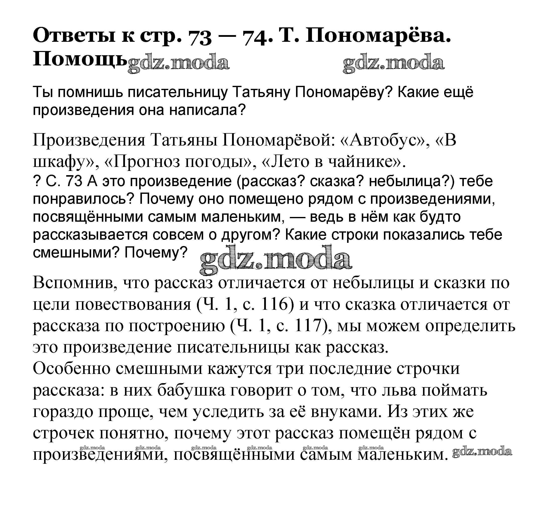 ОТВЕТ на задание № 73-74 Учебник по Литературе 3 класс Чуракова Перспективная начальная школа